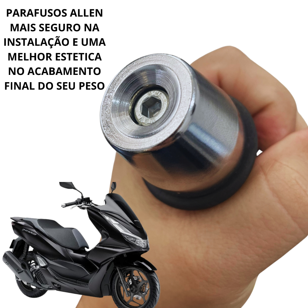Par De Peso do Guidão Modelo PCX para Guidão Oco ou Maciço, em metal Polido e Cromado.
