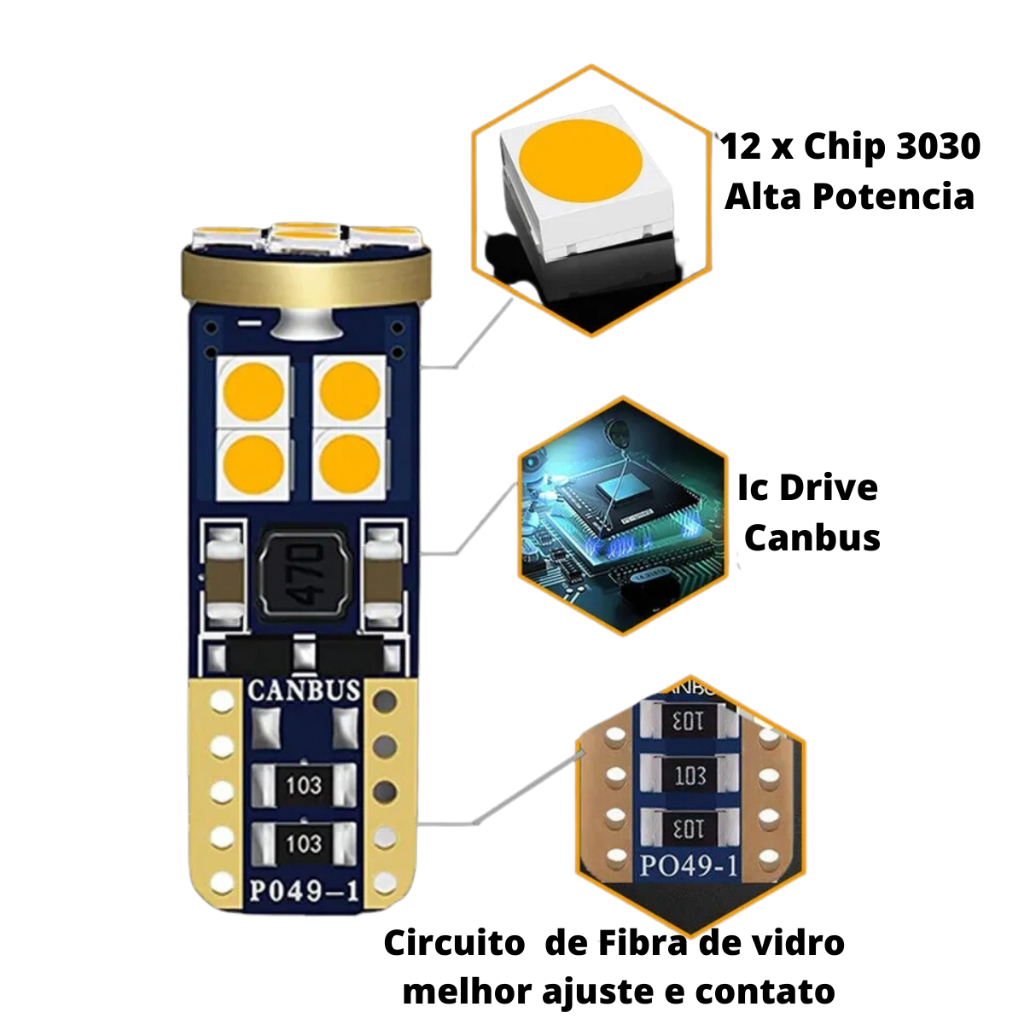 Par De Pingo Led Canbus Ambar Laranja 12/24V Lanterna Farol Carro moto caminhão