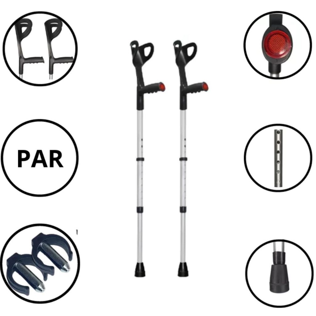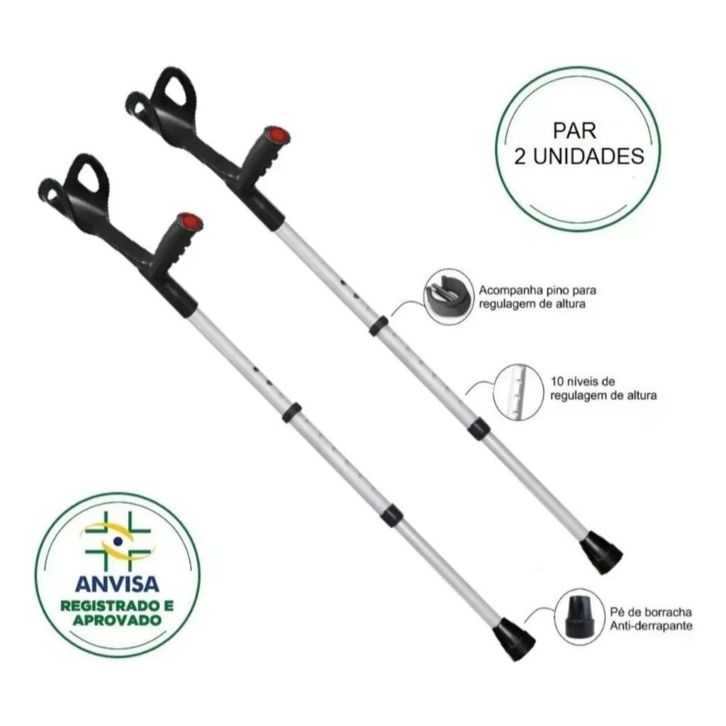 Par Muleta Ortopédica Canadense Auxiliar Com 10 Niveis de Regulagem até 120 Kg