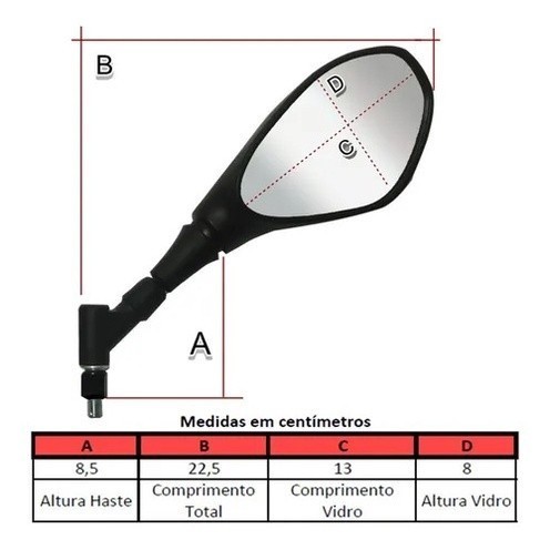 Par Retrovisor F800 GS650 BMW Giro 360 Haste Curta/Longo Rosca Honda/Yamaha (NAO E MINI)