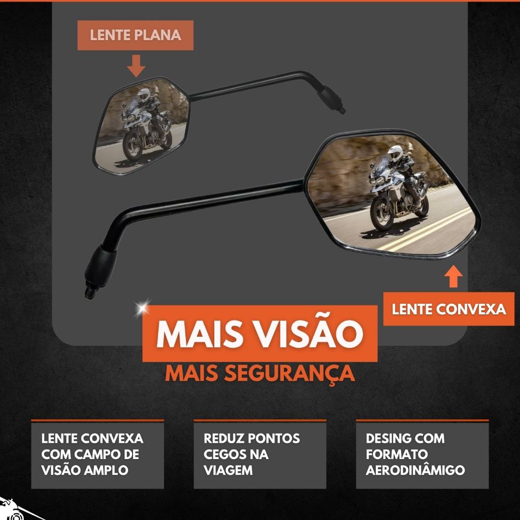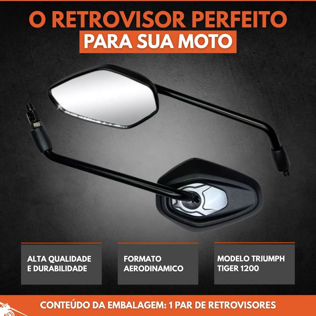 Par Retrovisor Rosca Modelo Triumph Tiger 1200 Preto Espelho