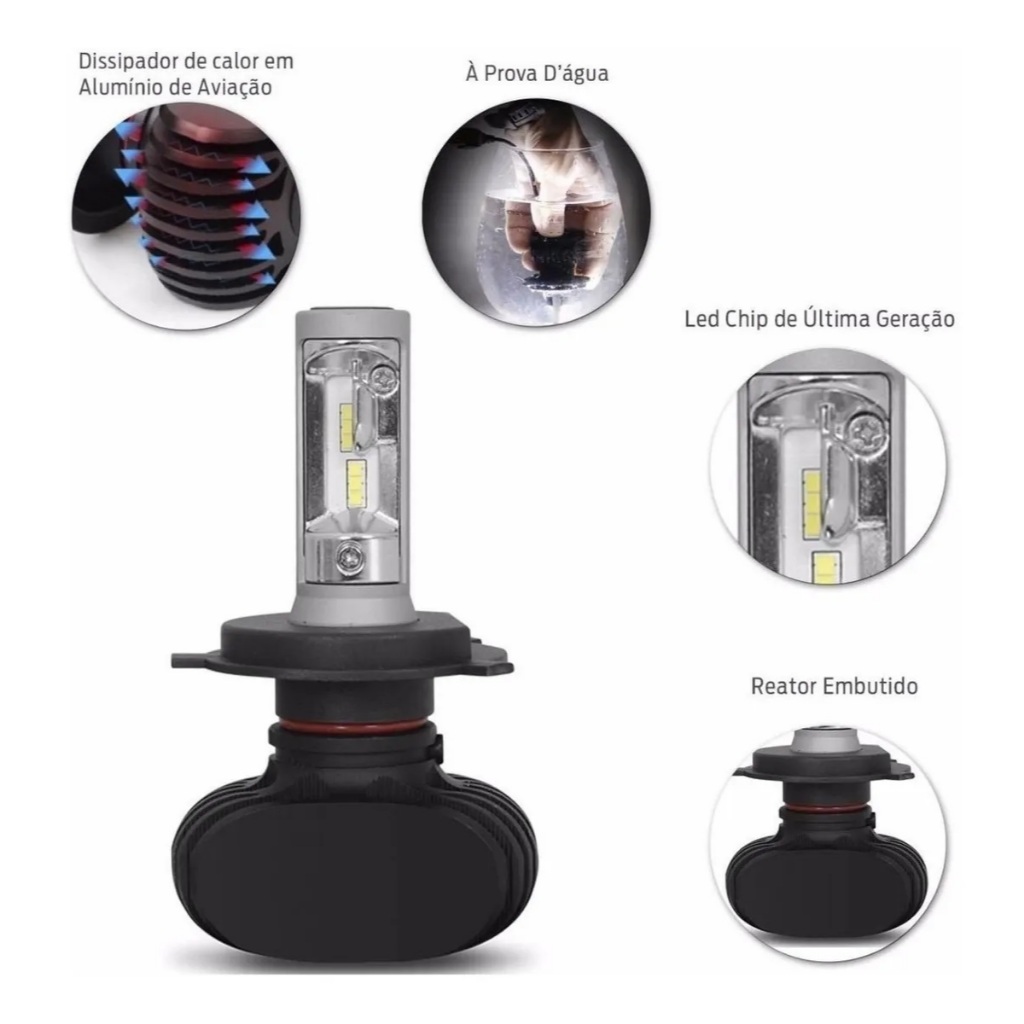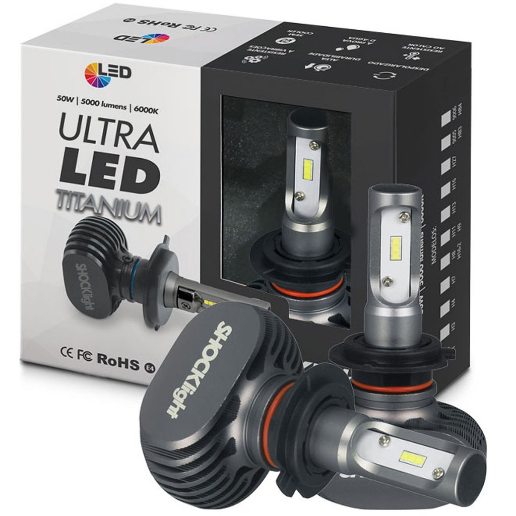Par Ultra Led Lâmpada ShockLight H7 Titanium 6000K 12V 50W 10000 Lúmens