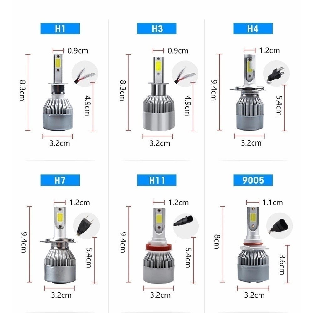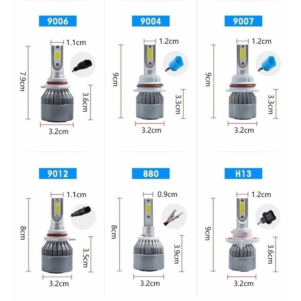 Par de Lâmpadas C6 Super Led 6000K H1 H3 H4 H7 H11 H13 H16 H27 HB3 HB4 12V a 24V Alex