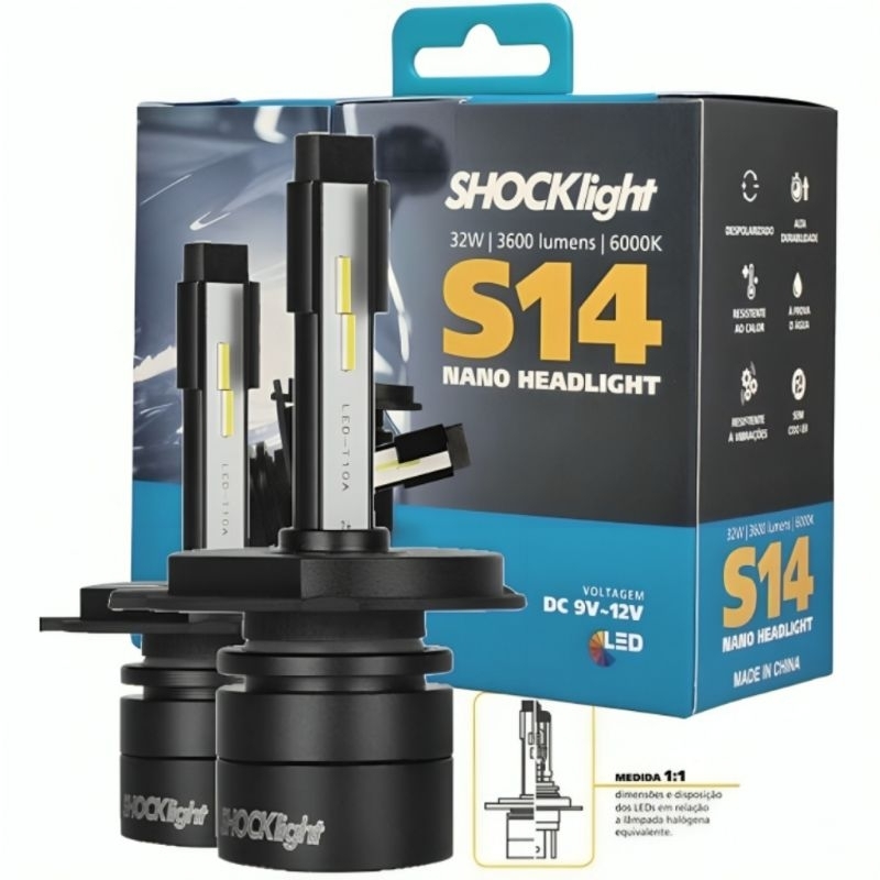 Par de Lâmpadas s14 Mini Shocklight 6000K 3.600 lumens h1 h3 h4 h7 h8 h9 h11 hb3 hb4 h27 h16
