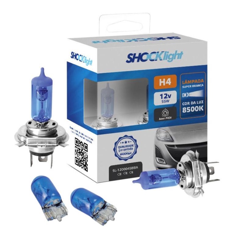 Par de Lampada H4 Super Branca para Farol + Par de Lâmpada Pingão T10 Super Branca para Lanterna