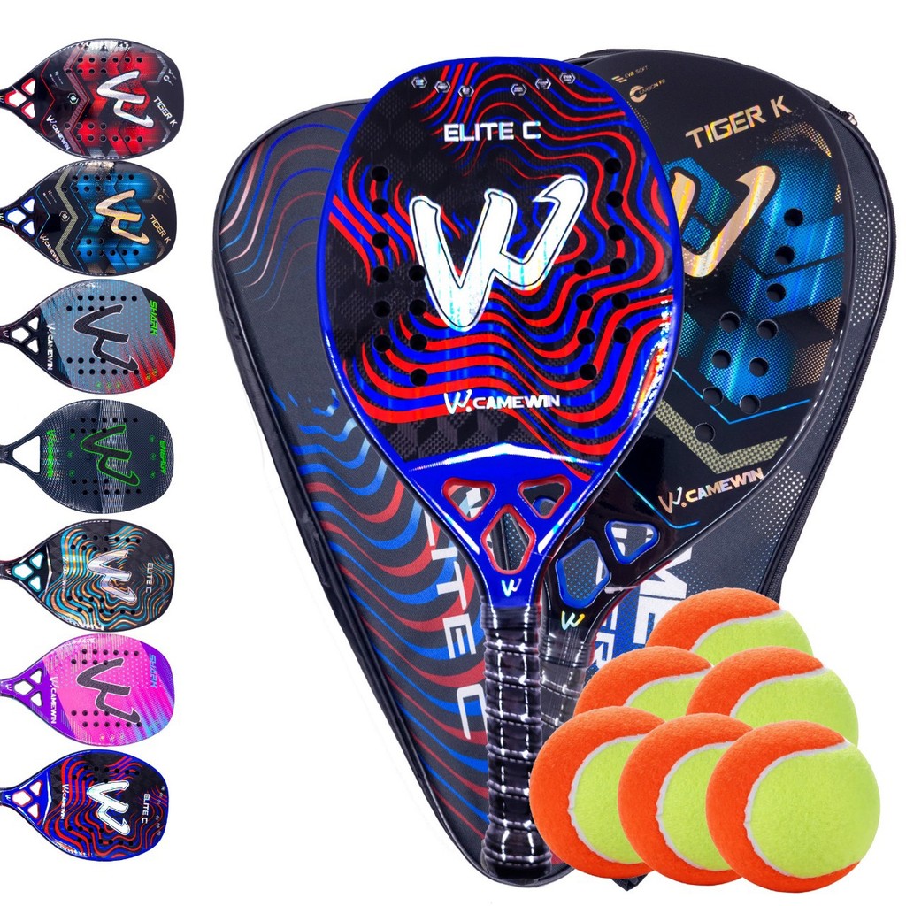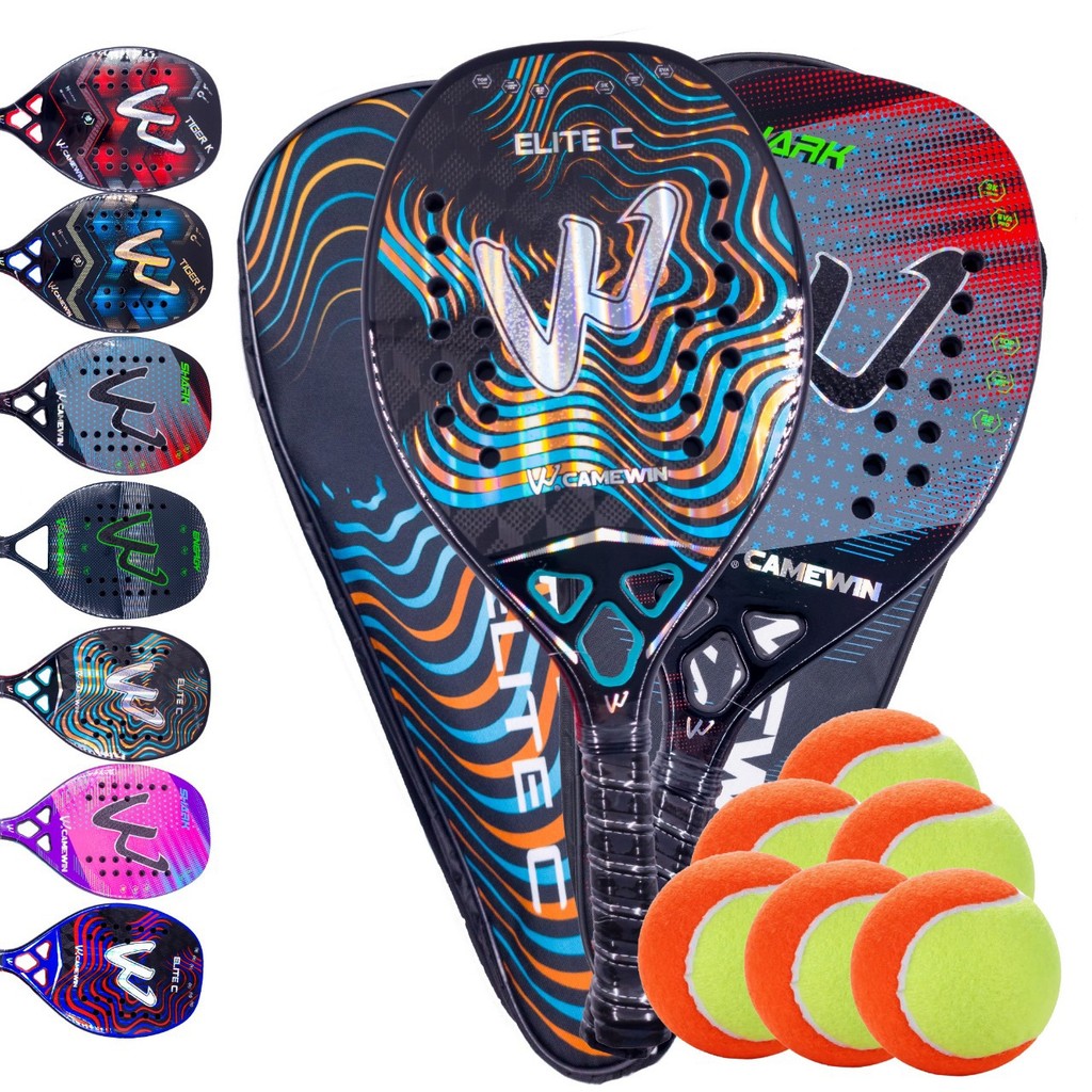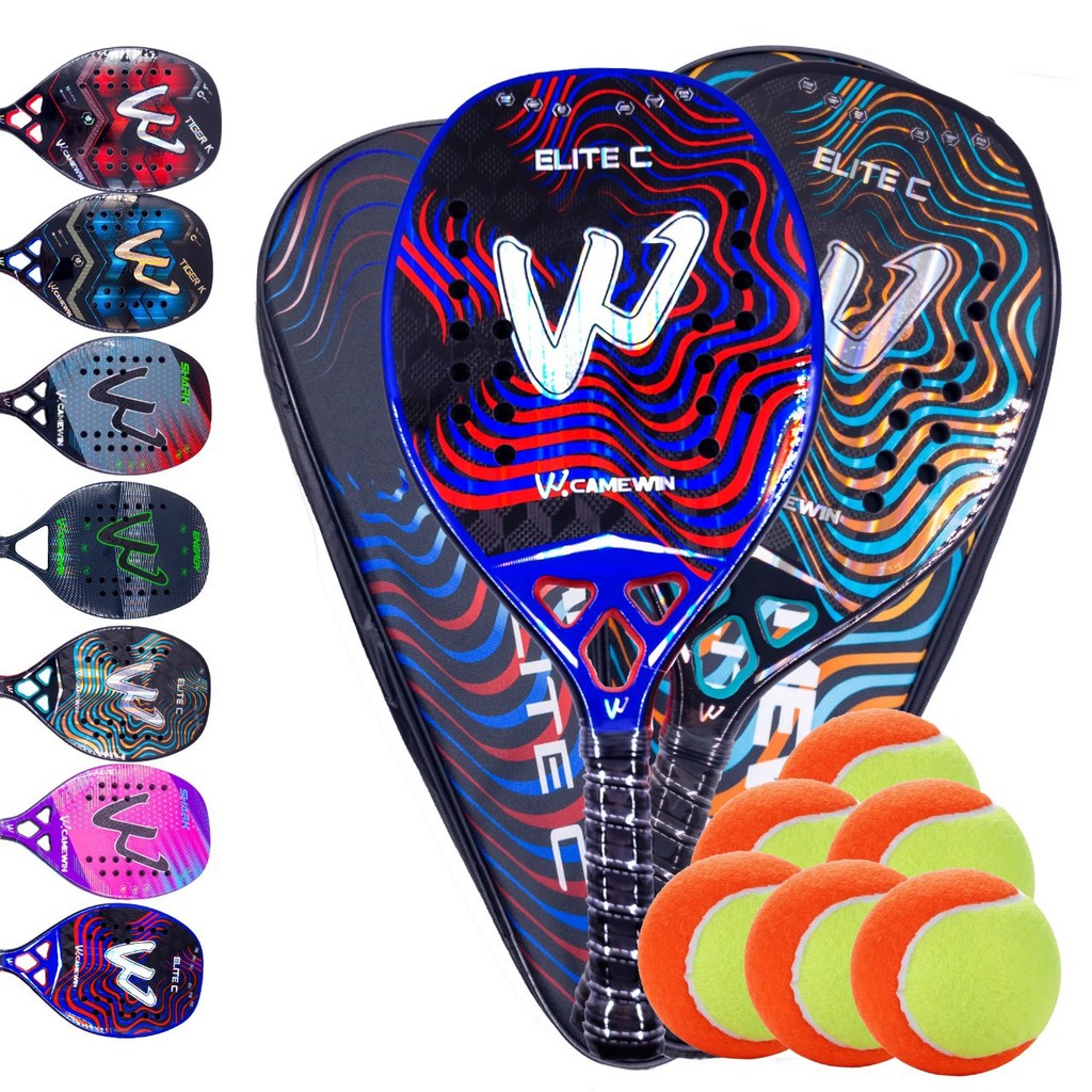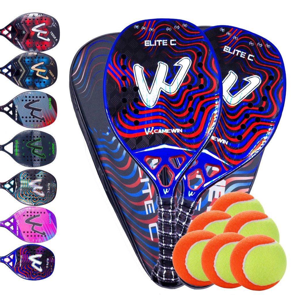 Par de Raquetes Beach Tennis Carbono 3k Camewin + 6 Bolinhas e Capa Protetora