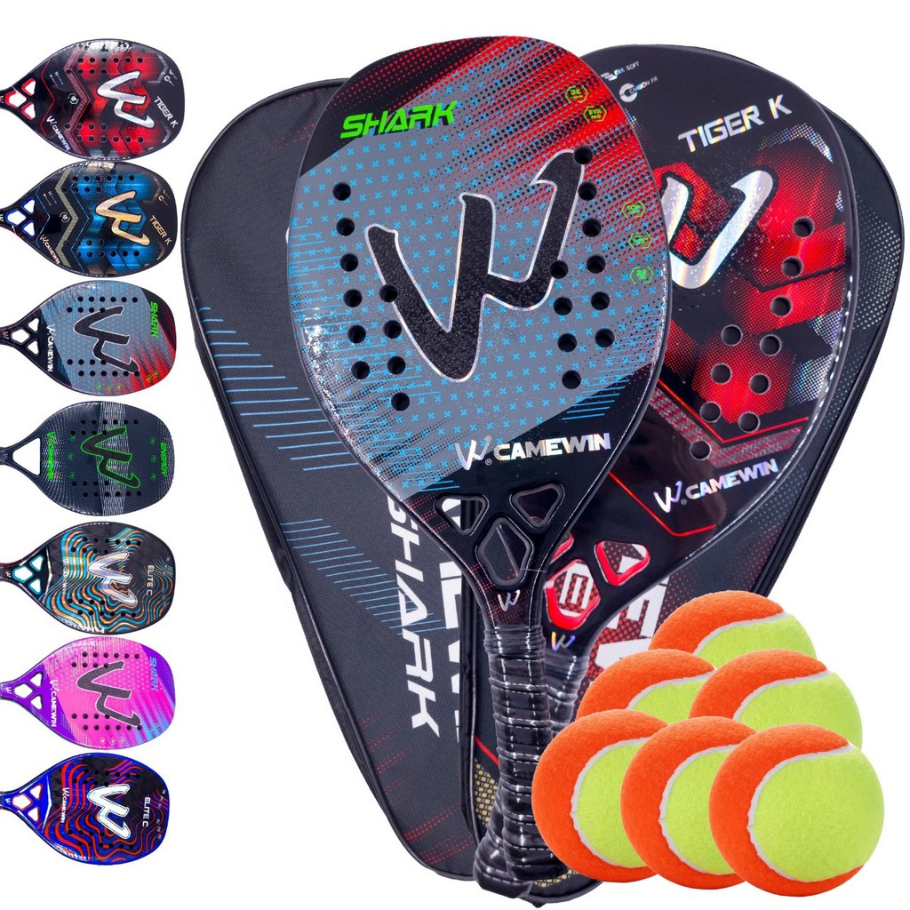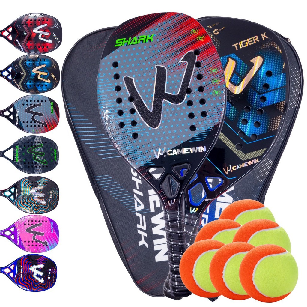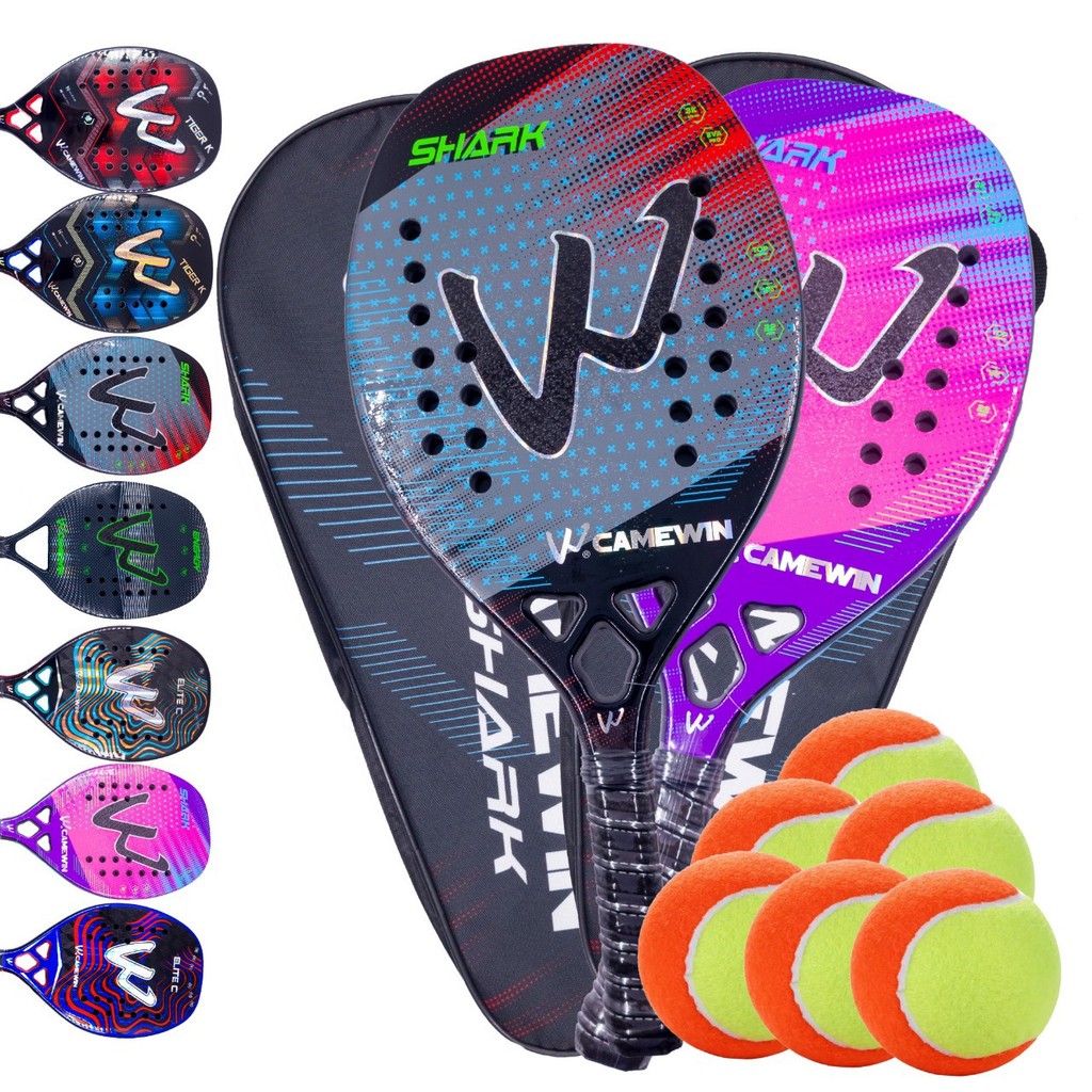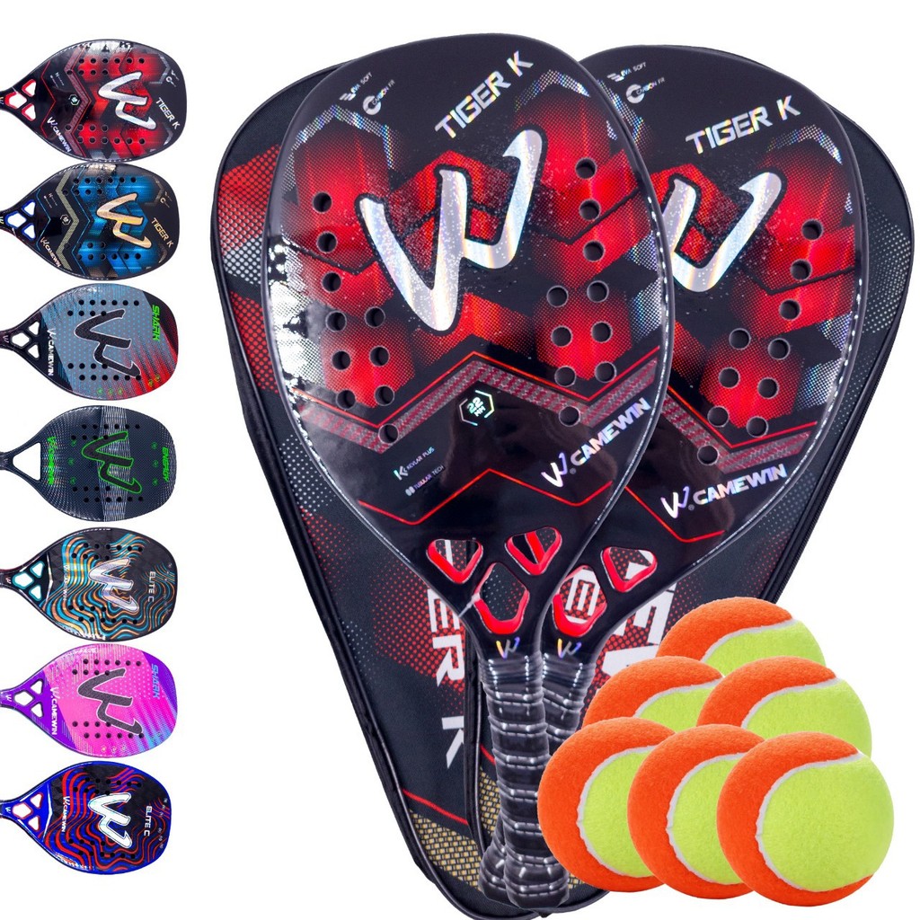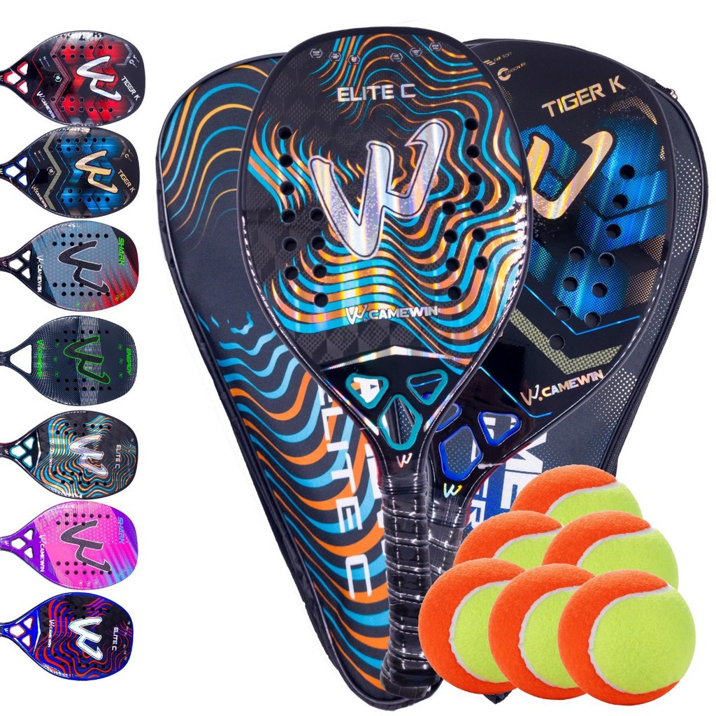 Par de Raquetes Beach Tennis Carbono 3k Camewin + 6 Bolinhas e Capa Protetora