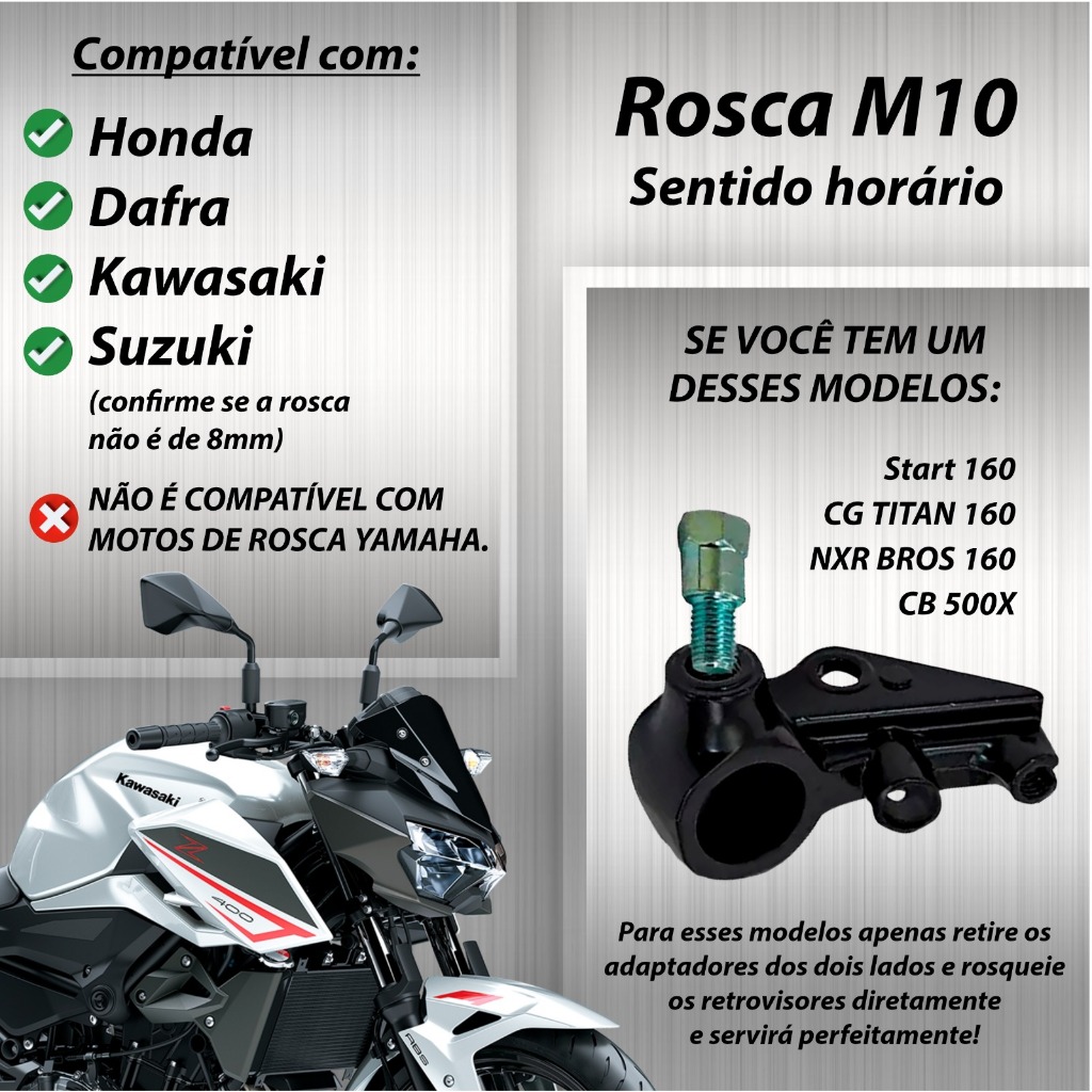 Par de Retrovisor Bmw F800 Haste Curta Rebaixada 90° Convexa Honda