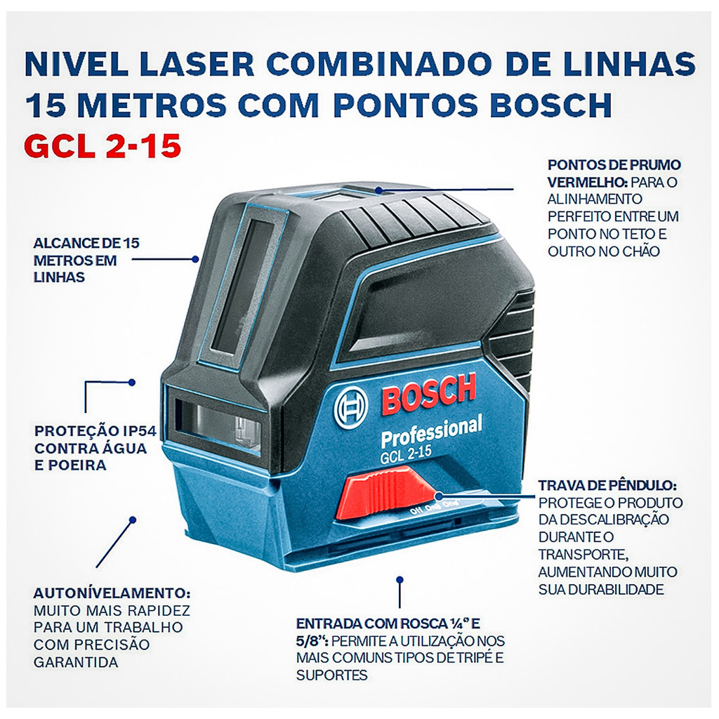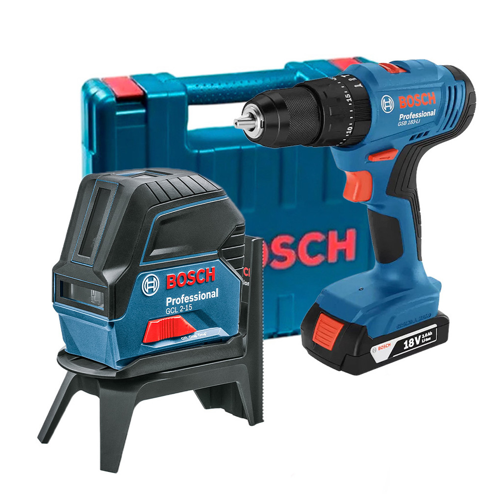Parafusadeira 18V Bosch GSB 183-LI + Nível a Laser GCL 2-15 com Maleta e Acessórios