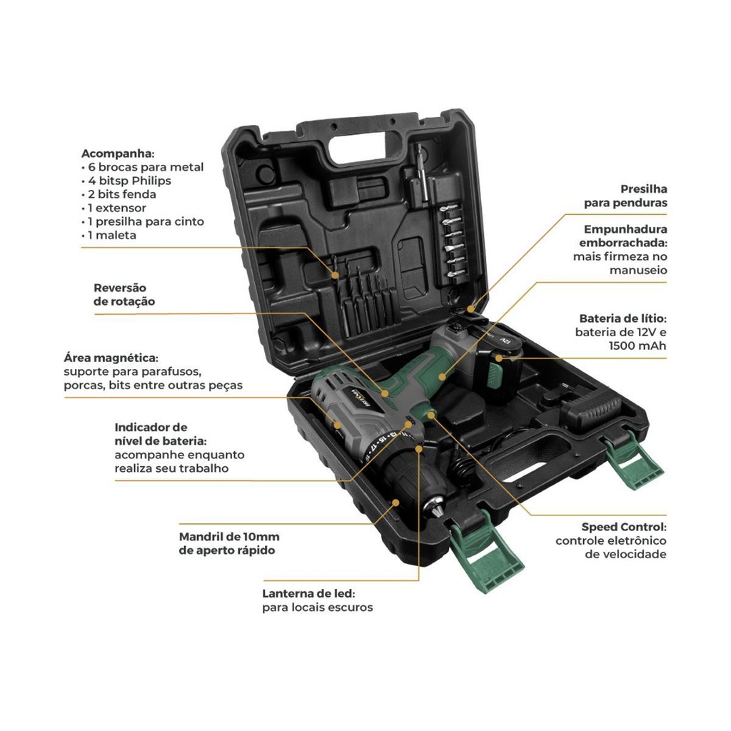 Parafusadeira 2 em 1 Britânia Speed Control BPFE12M 800RPM
