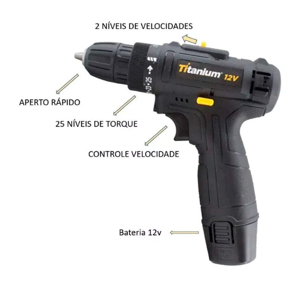 Parafusadeira Bateria 12V 3/8Pol. Bivolt Carregador Profissional + Maleta Tools Organizador Compacto