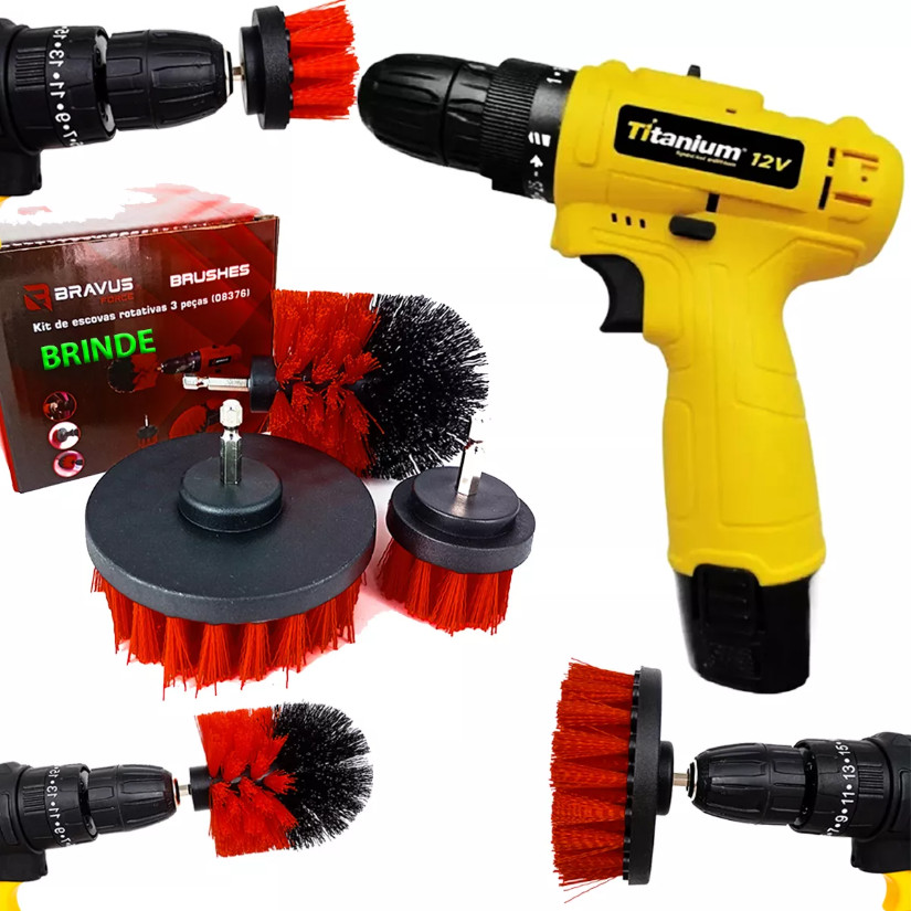 Parafusadeira Edttion 12V + Jogo Escovas Rotativas Titanium