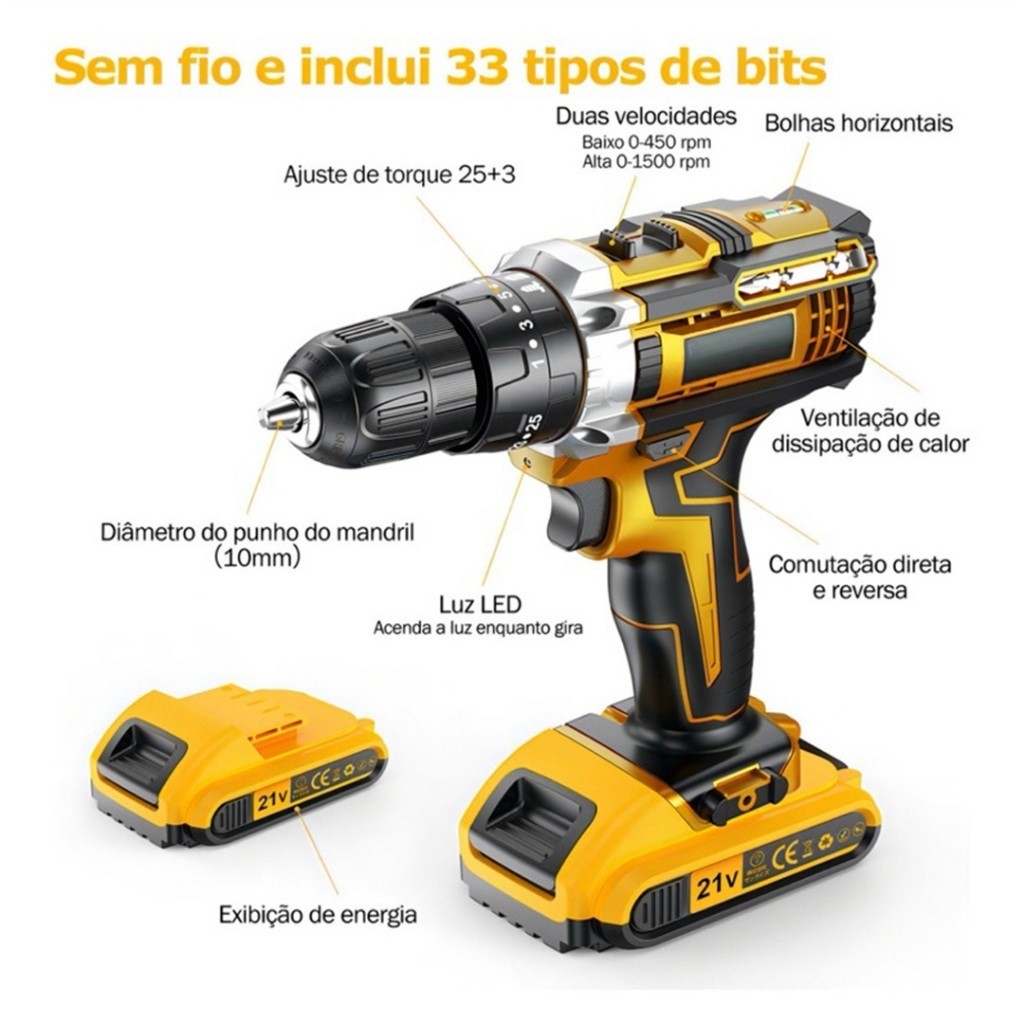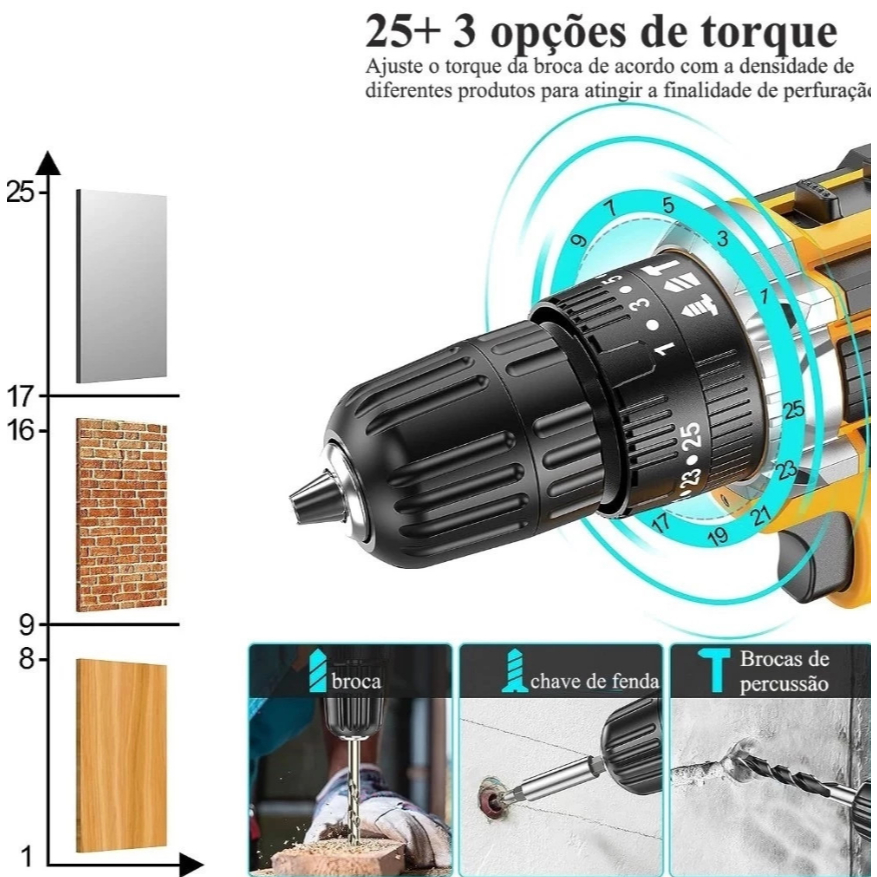 Parafusadeira Furadeira 24V 2 Baterias Com Maleta e Acessórios Completo