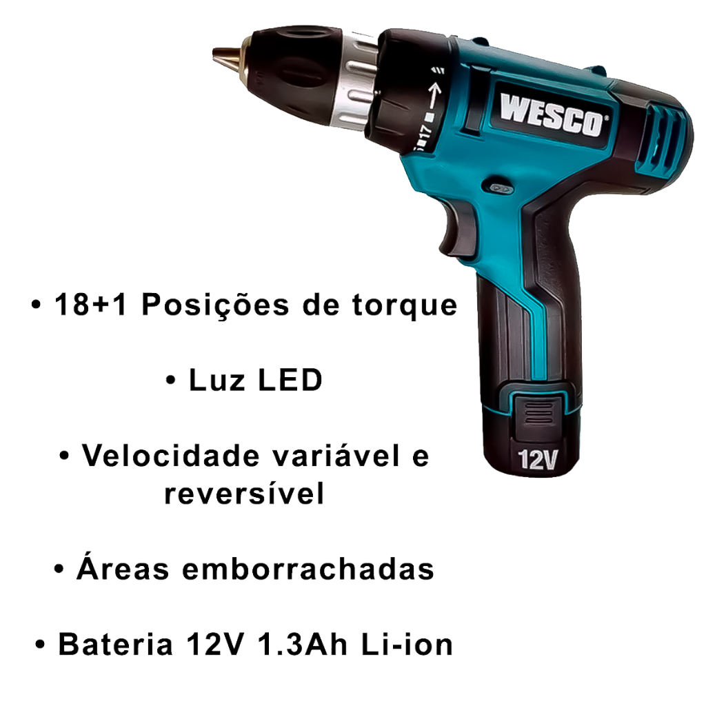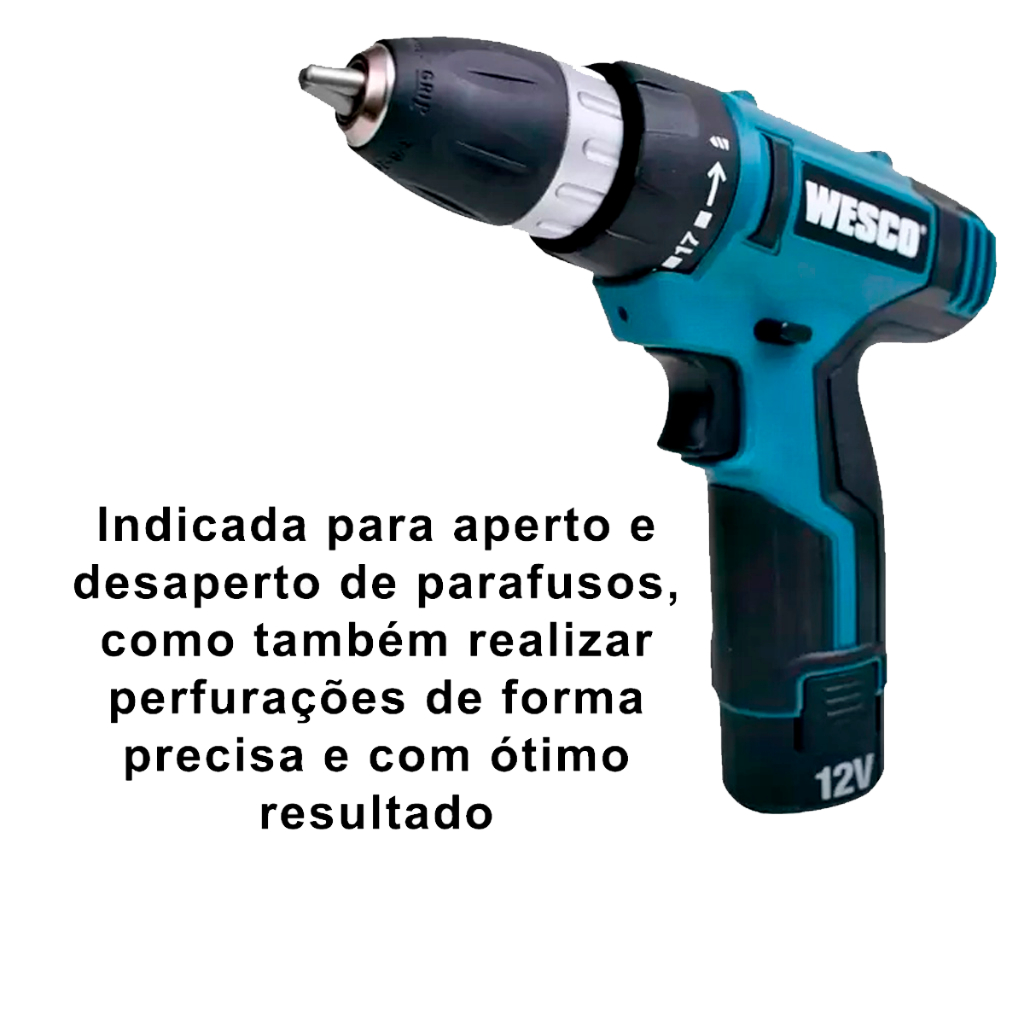 Parafusadeira Furadeira 3/8 12v Bateria Lítio WS2532 Com Kit Acessórios Profissional WESCO