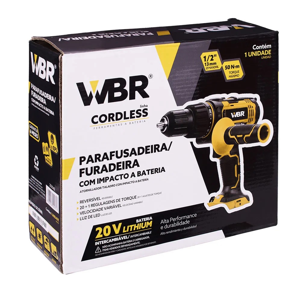 Parafusadeira Furadeira Impacto 1/2 50Nm 20V Bateria Wagner