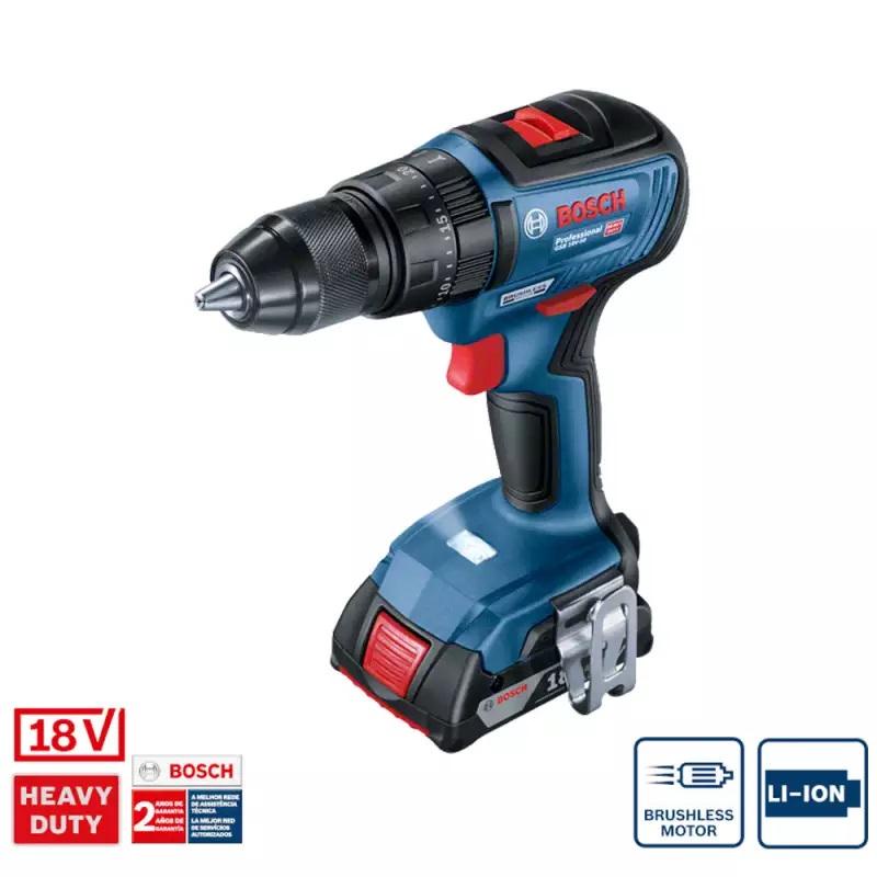 Parafusadeira Furadeira Impacto 18V Brushless 2 Baterias GSB 18V-50 BOSCH + brocas