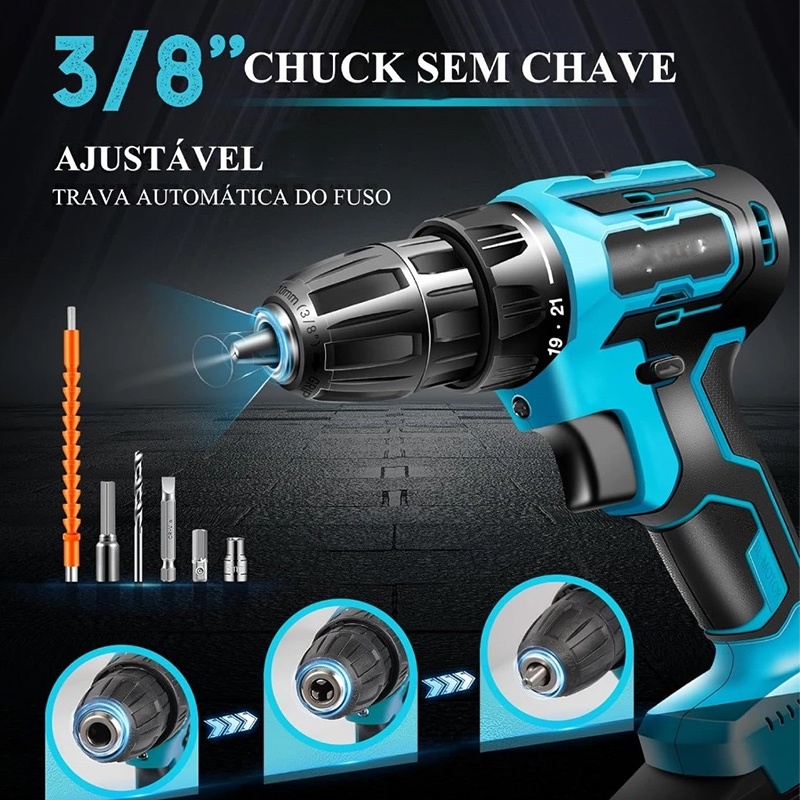 Parafusadeira/Furadeira be Impacto Kit Maleta COM DUAS BATERIAS Kit de 28pcs 220V/110V