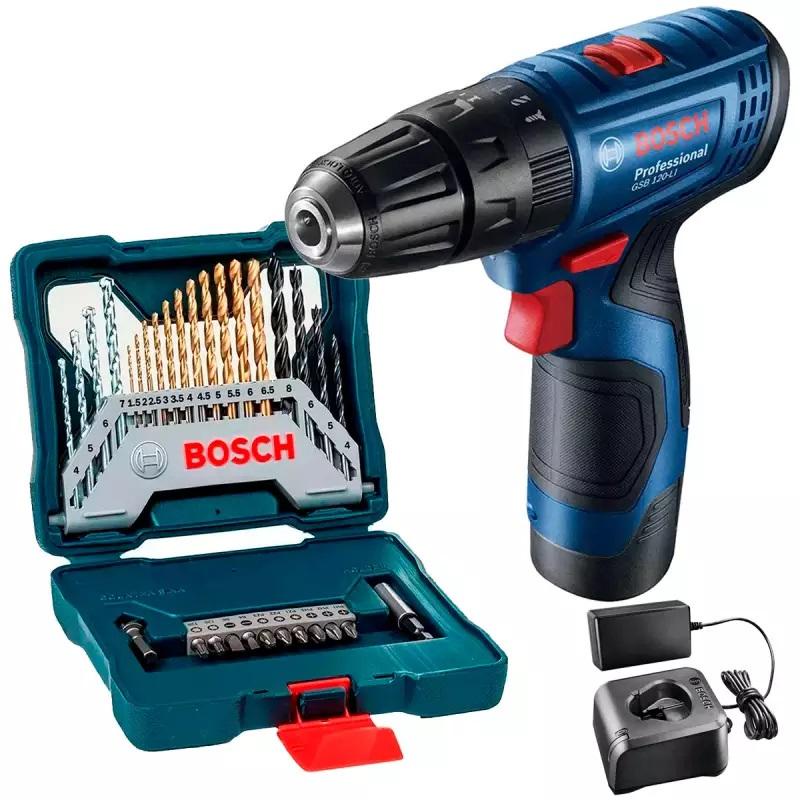 Parafusadeira e Furadeira 12V com Impacto GSB 120-LI + Estojo 34 Peças X-Line Titânio BOSCH