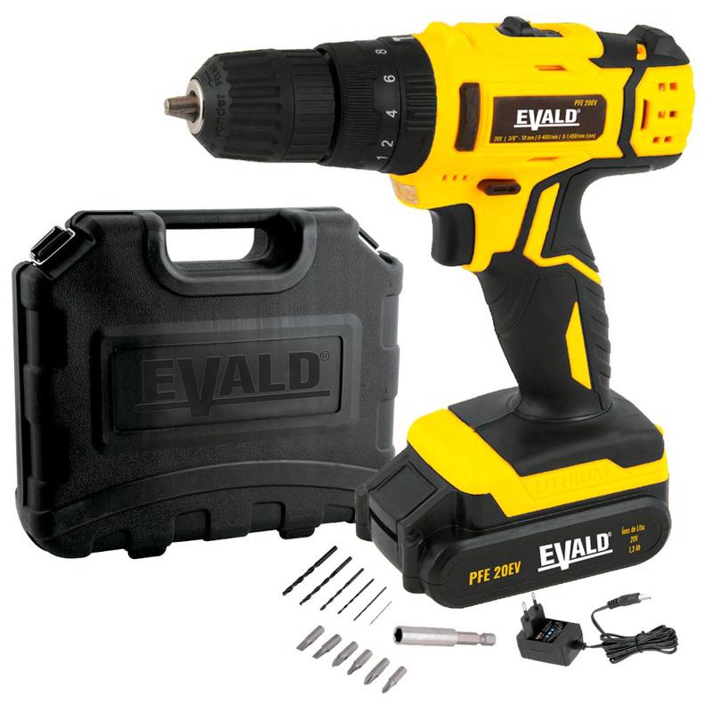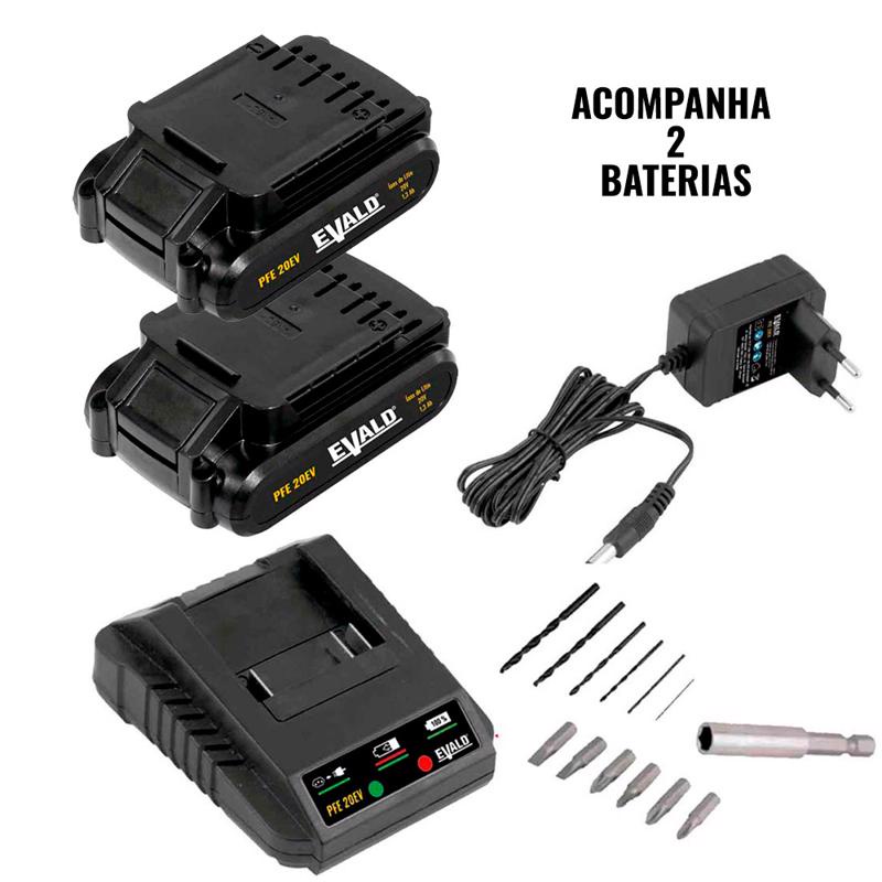 Parafusadeira e Furadeira de Impacto à Bateria 20V PFE-20EV com Maleta, 2 Baterias e Kit EVALD