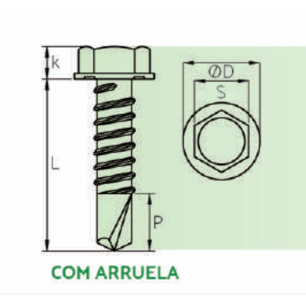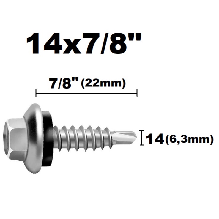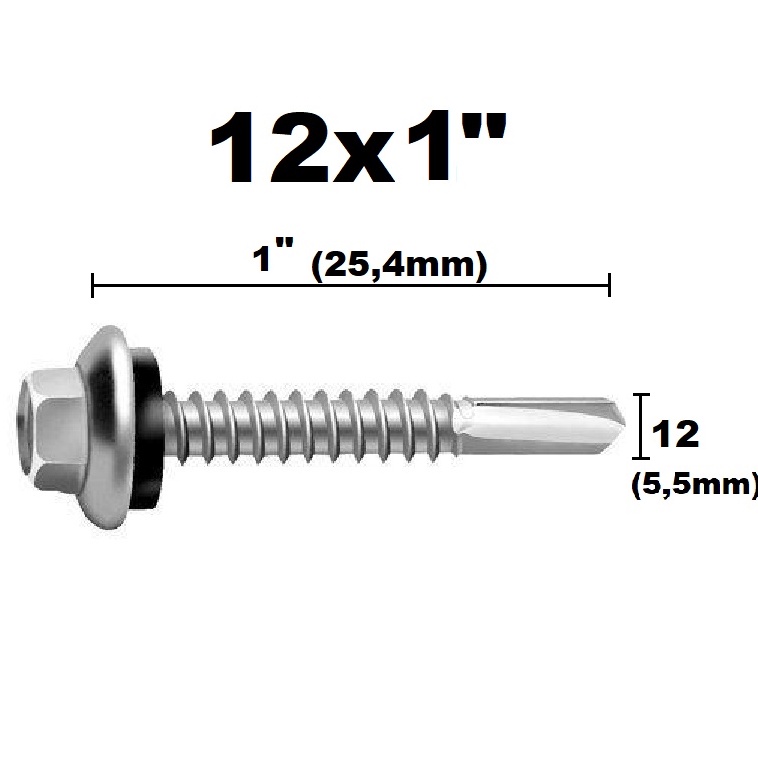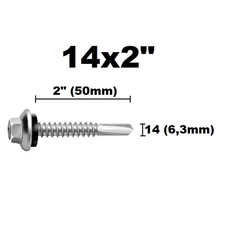 Parafuso Auto Brocante Sextavado Telha 12x3/4 - 12x1- 12x2 - 14x3/4 - 14x7/8 - 14x2 com Arruela - 10 PEÇAS