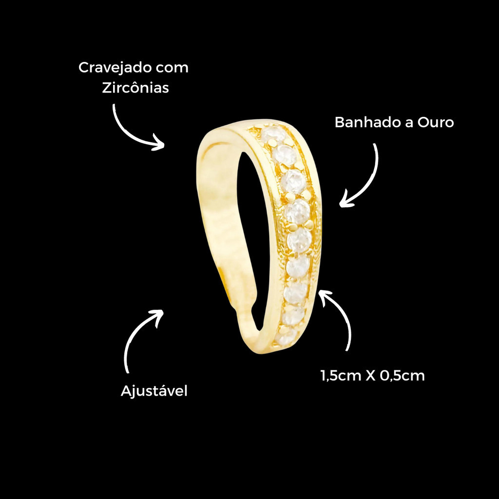 Passador Grande P/ Pingentes Argola Cravejada 1,5cm Banhado a Ouro