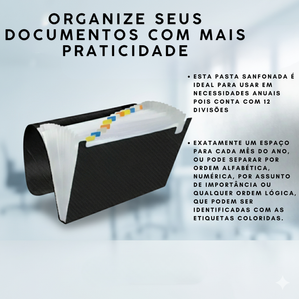 Pasta Sanfonada 12 Divisórias Tamanho A4 330x235mm