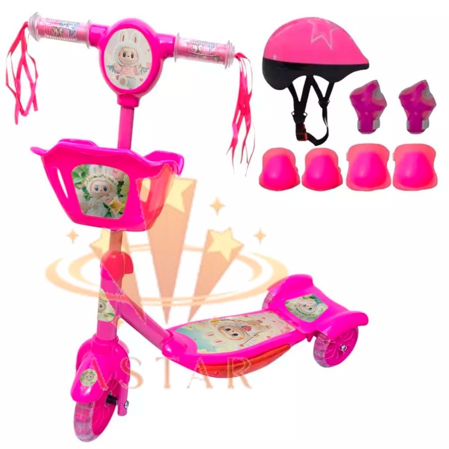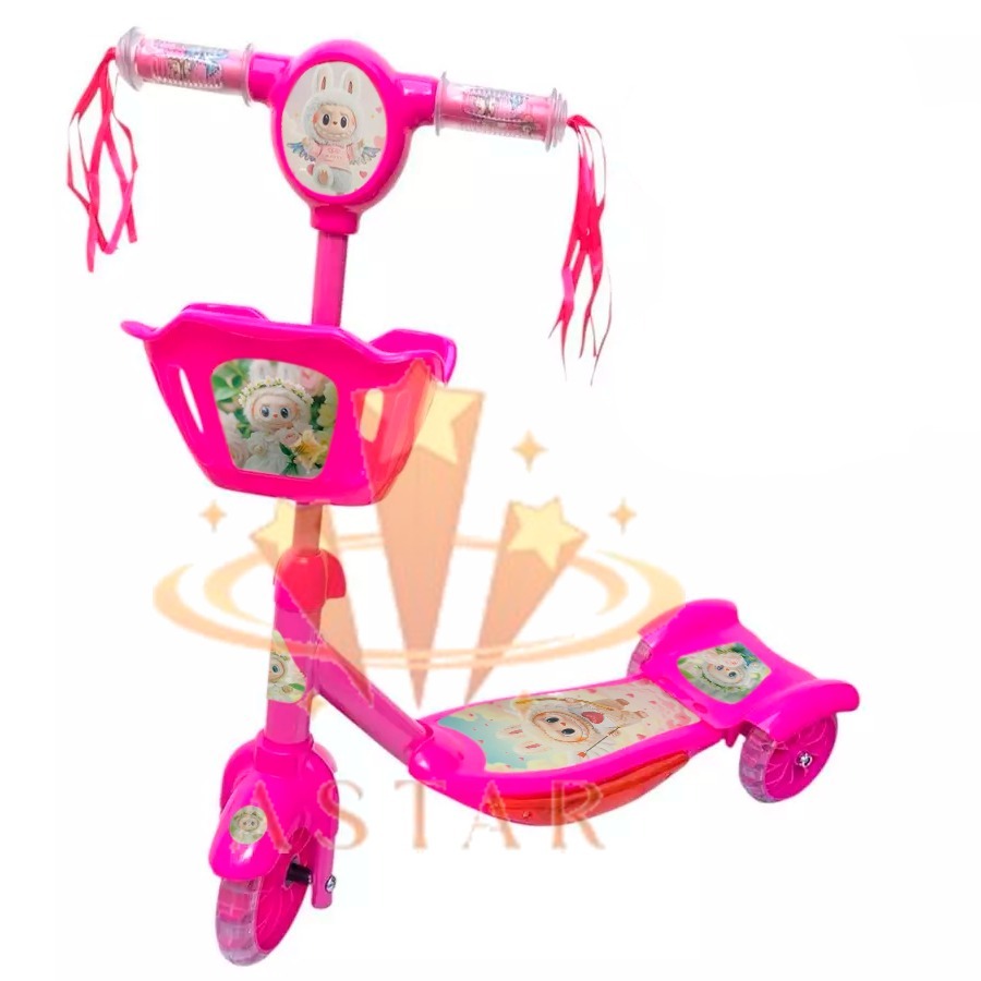 Patinete De Meninos Meninas Patinete Infantil Pata Musical 3 Rodas Cesta E Luzes Até 35kg