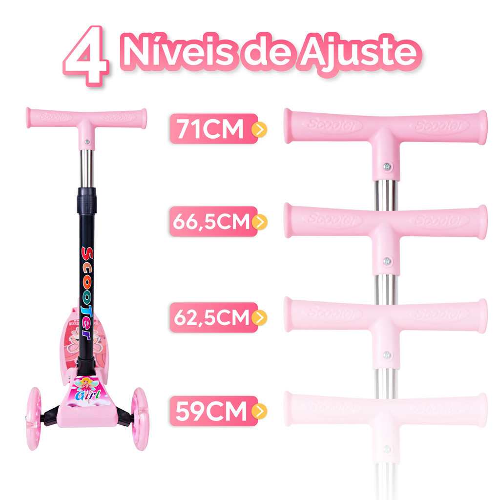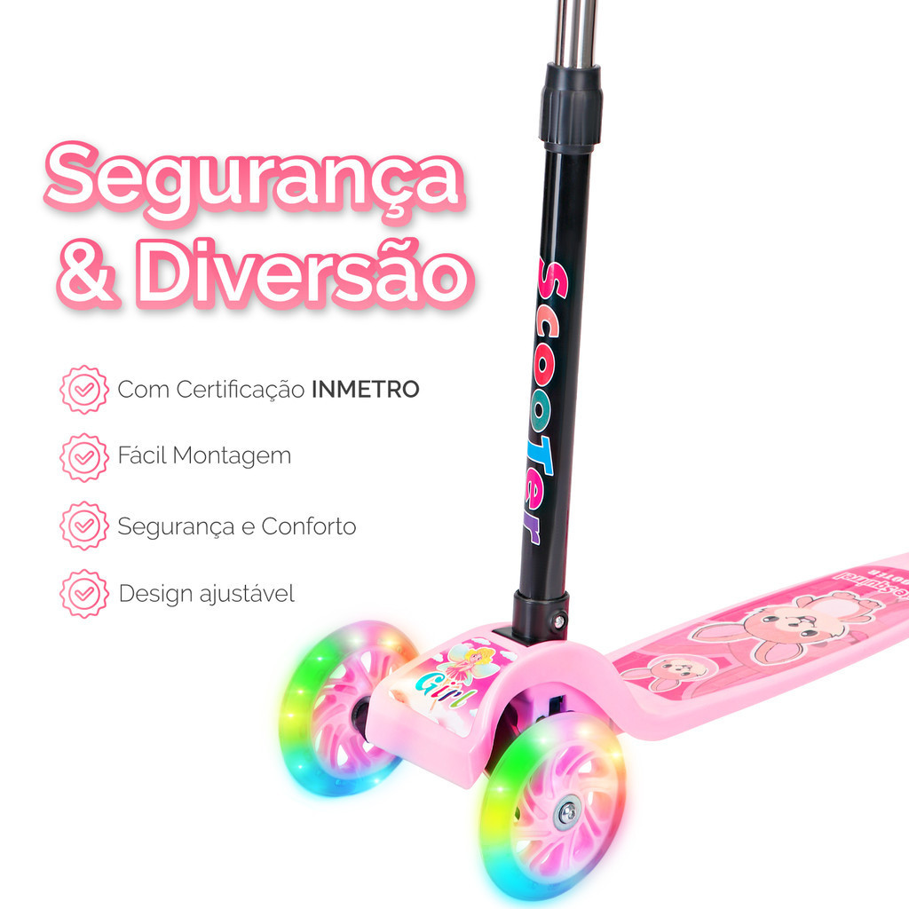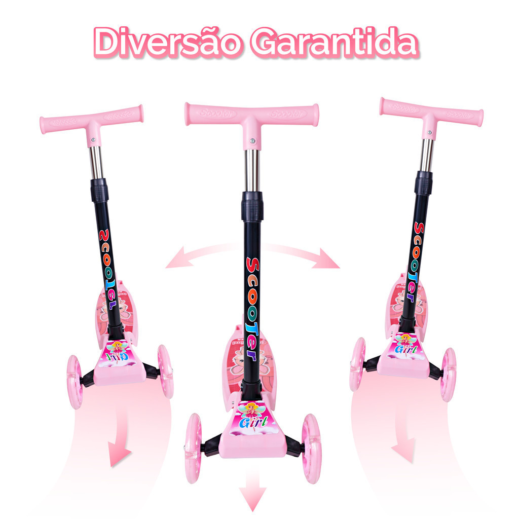 Patinete Infantil 3 Rodas De Led Dobrável Scooter Crianças