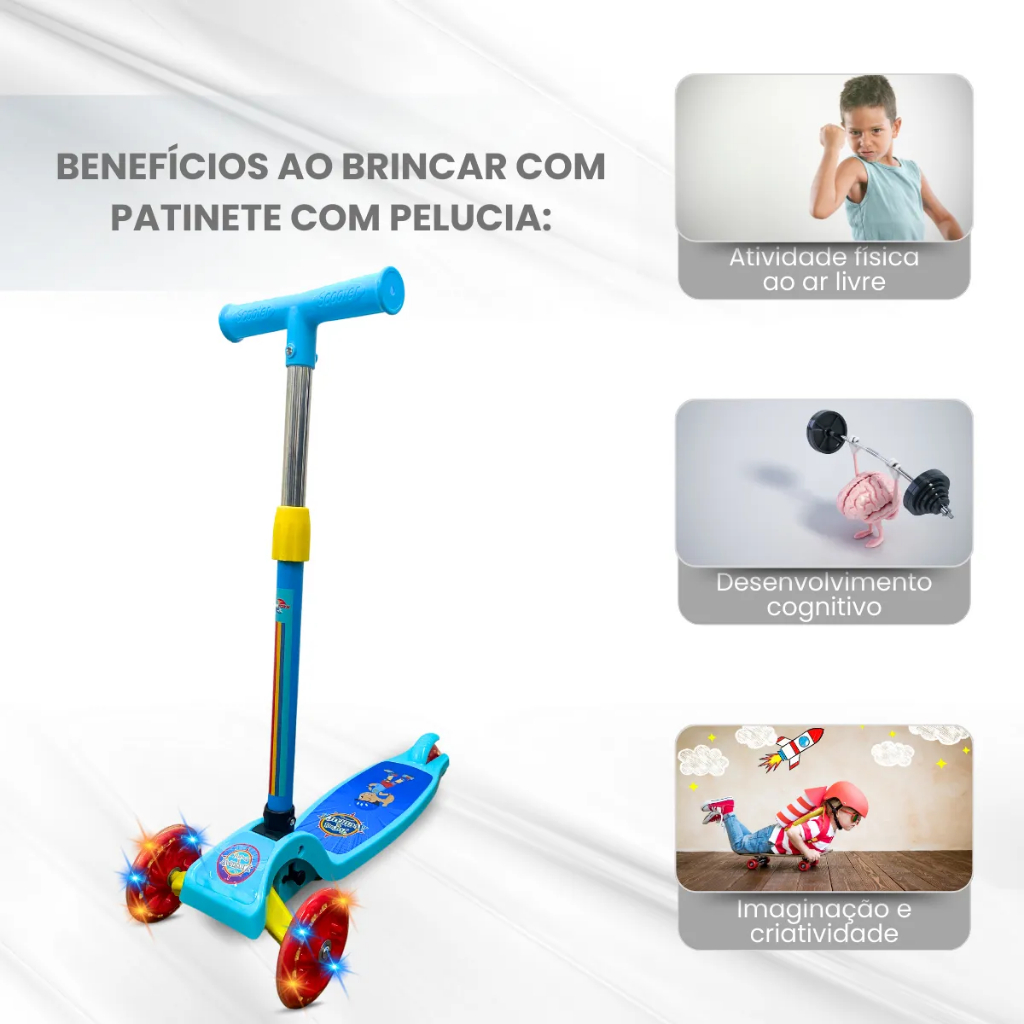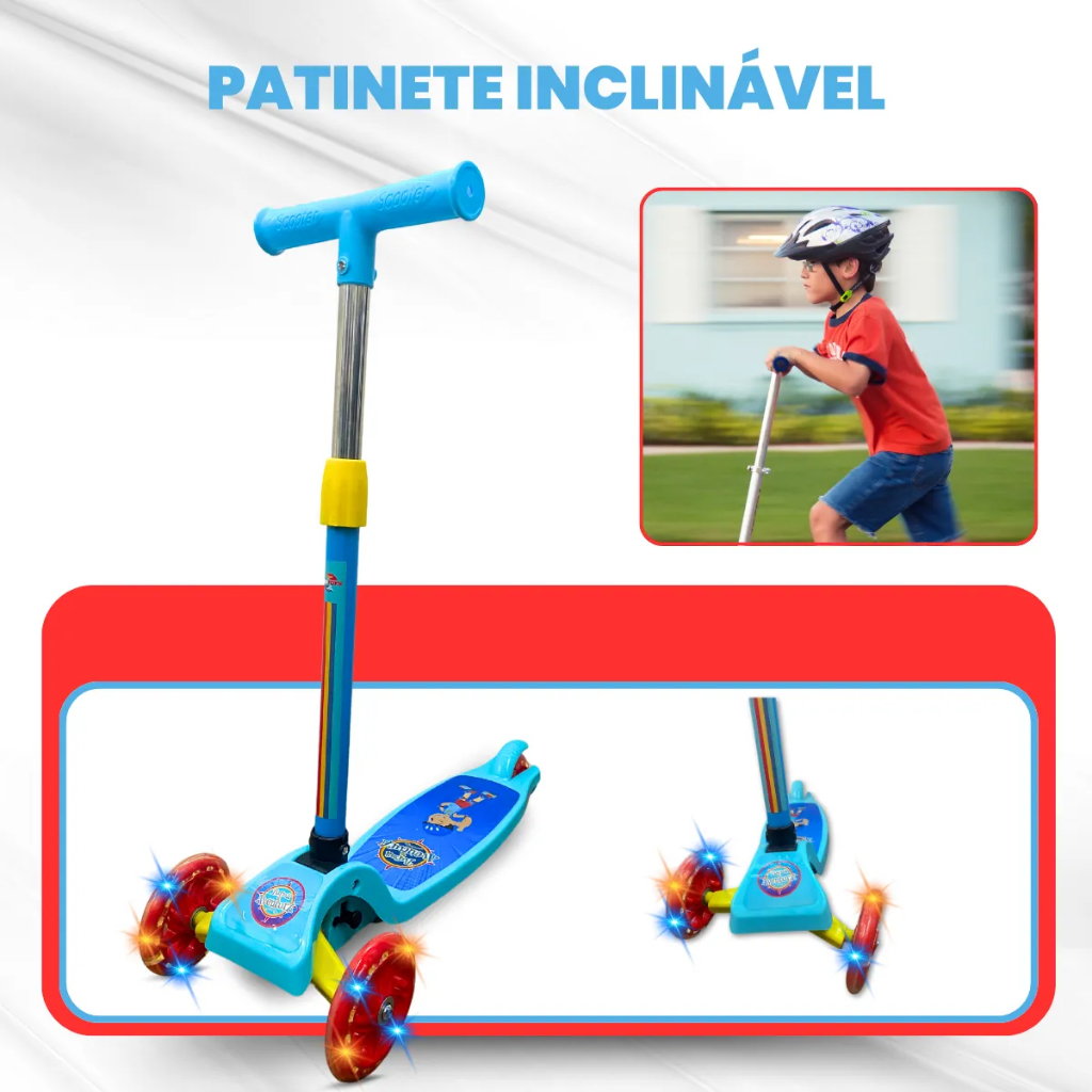 Patinete Infantil 3 Rodas com Led Luz Pro Aventura Azul Unytoys
