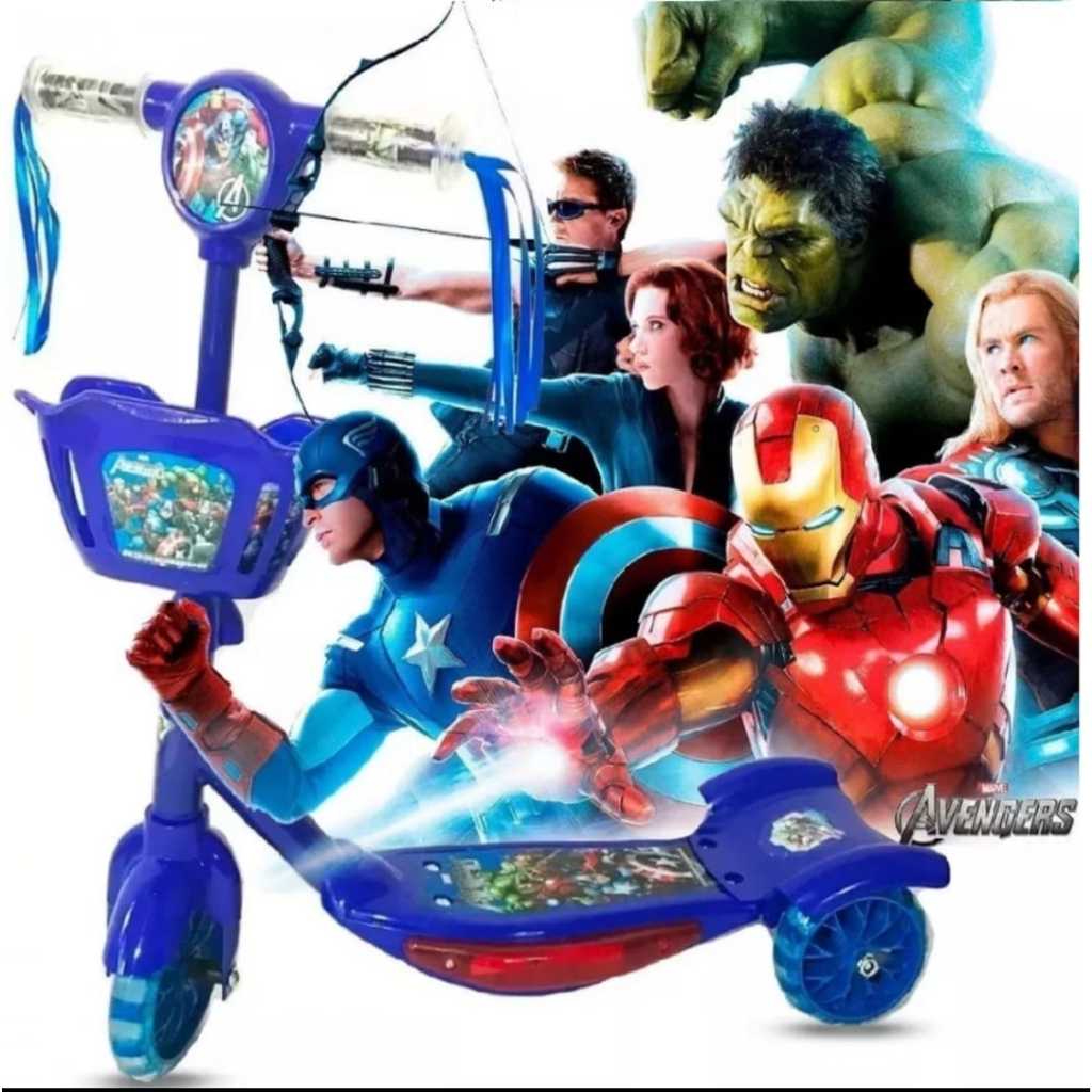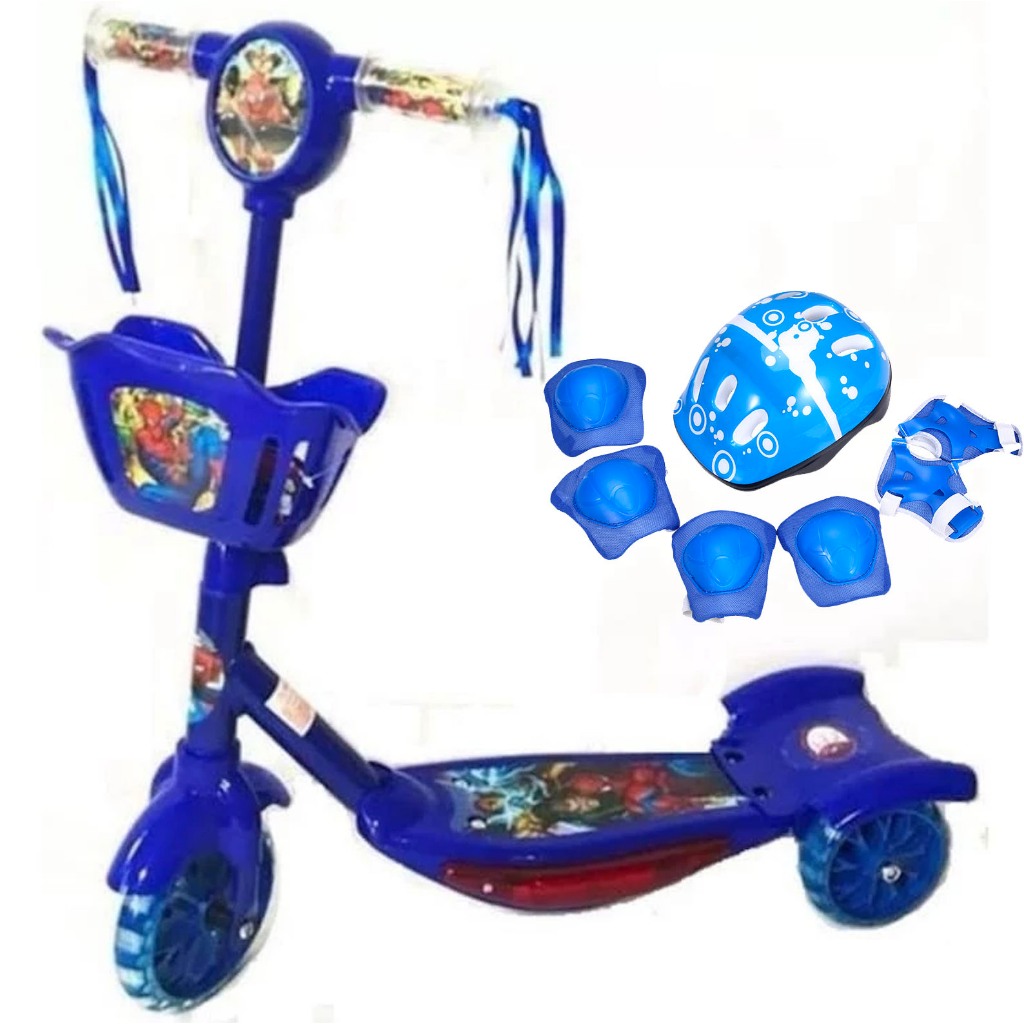 Patinete Infantil 3 Rodas Meninos Homen aranha Musical Cesta Luzes Patinete Promoção