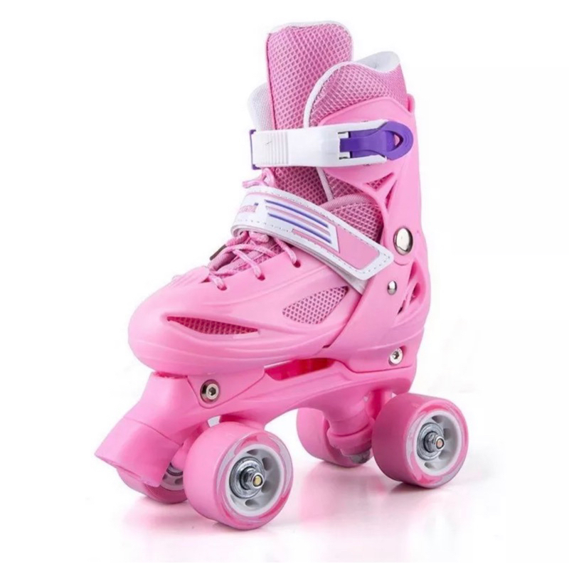 Patins 4 Rodas Quad Infantil Rosa Juvenil Push Com Trava Aventura Melhor Presente Envio Imediato