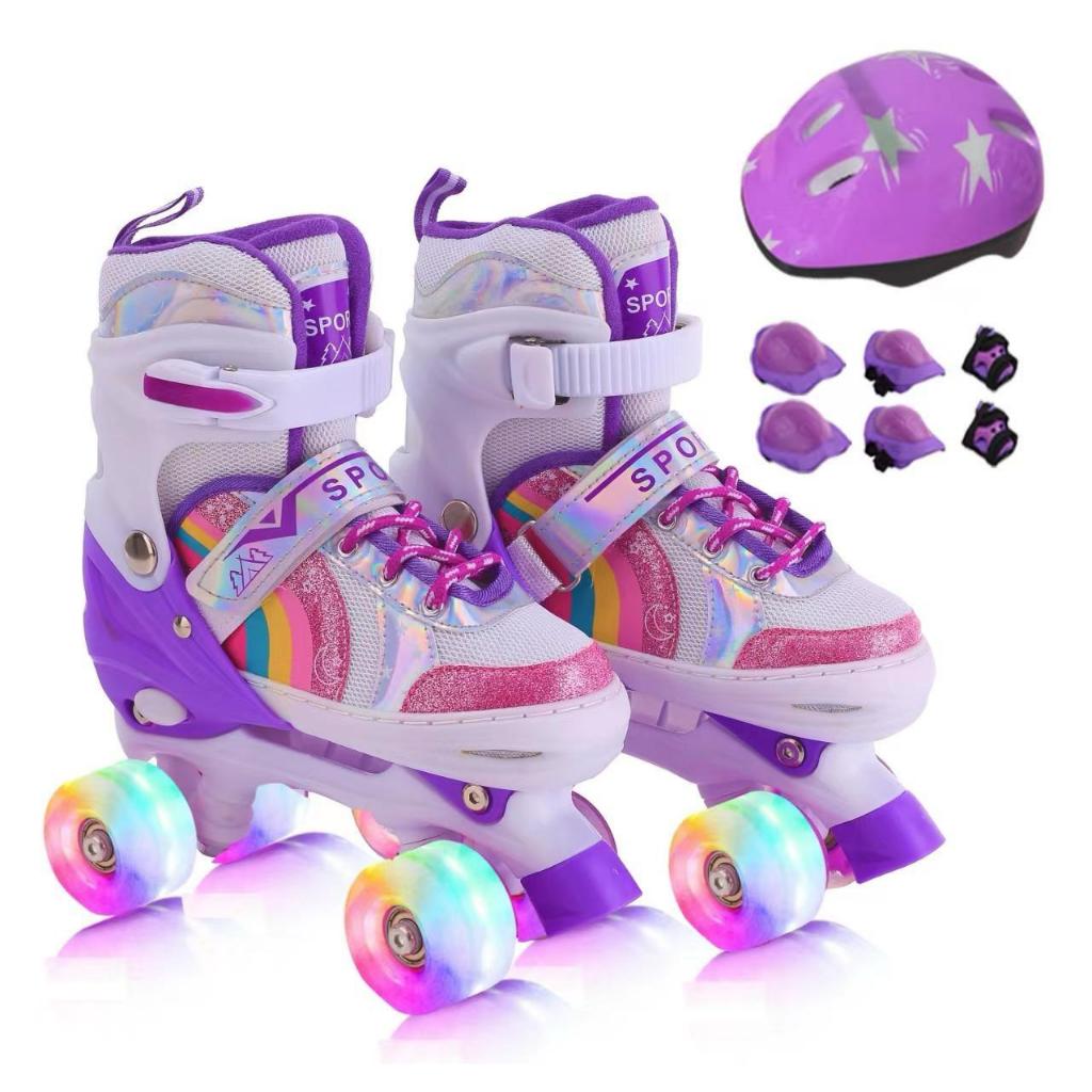 Patins Infantil 4 Rodas Meninas Com LED Patins Quad Rosa arco-iris Criancas Barato