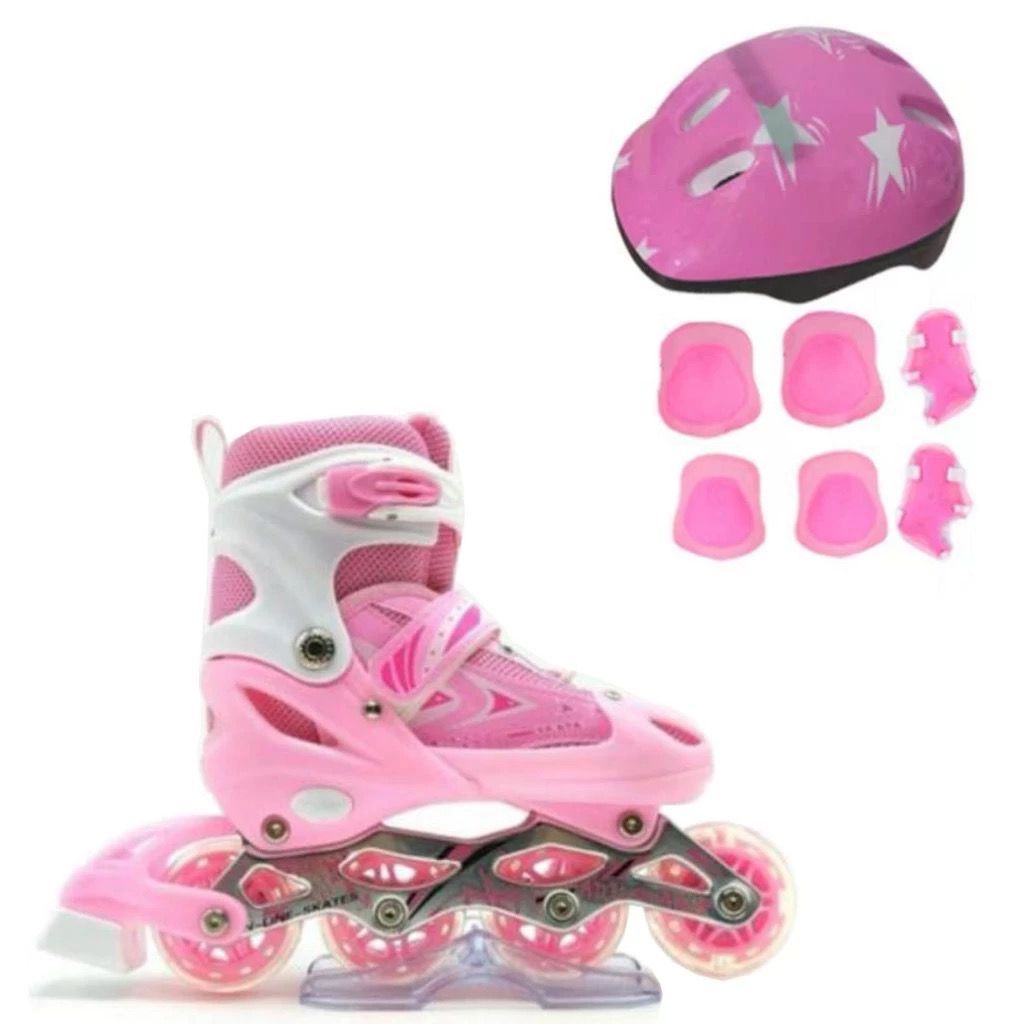 Patins Roller Inline Infantil Ajustável Roxo Com Luz De Led Com Kit Proteção Profissional Promoção LANCAMENTO
