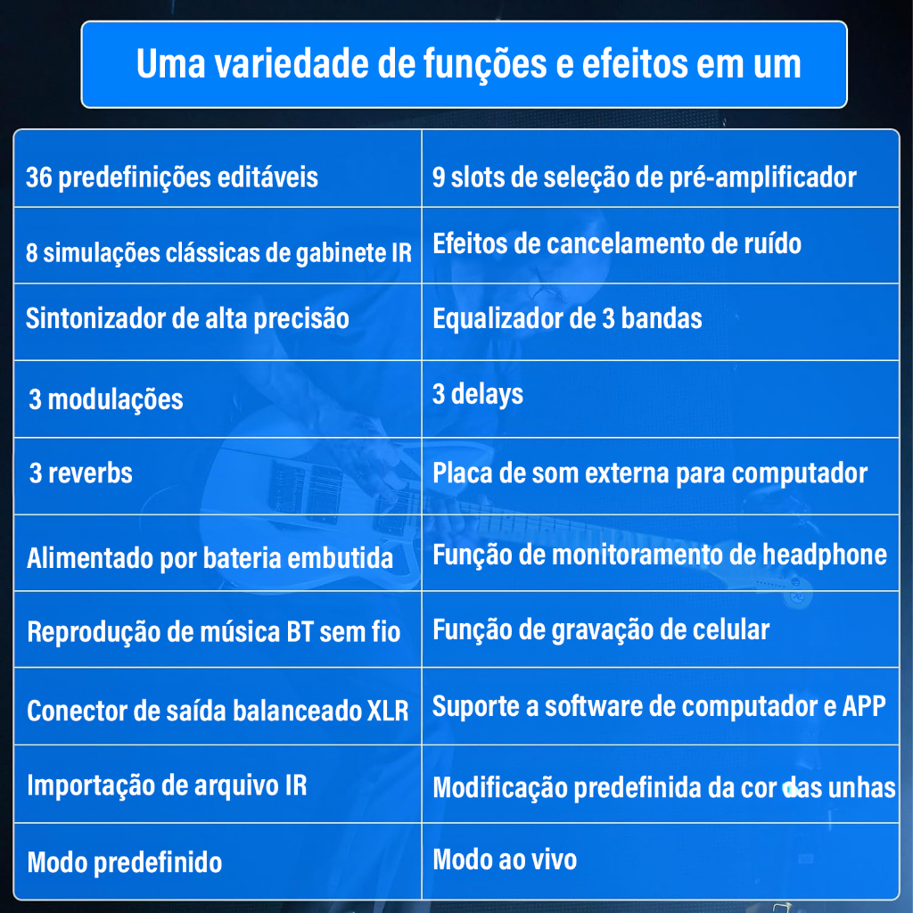 Pedal multiefeitos para guitarra M-VAVE Tank-G 36 predefinições 9 slots de pré-amplificador 8 slots de cabine de