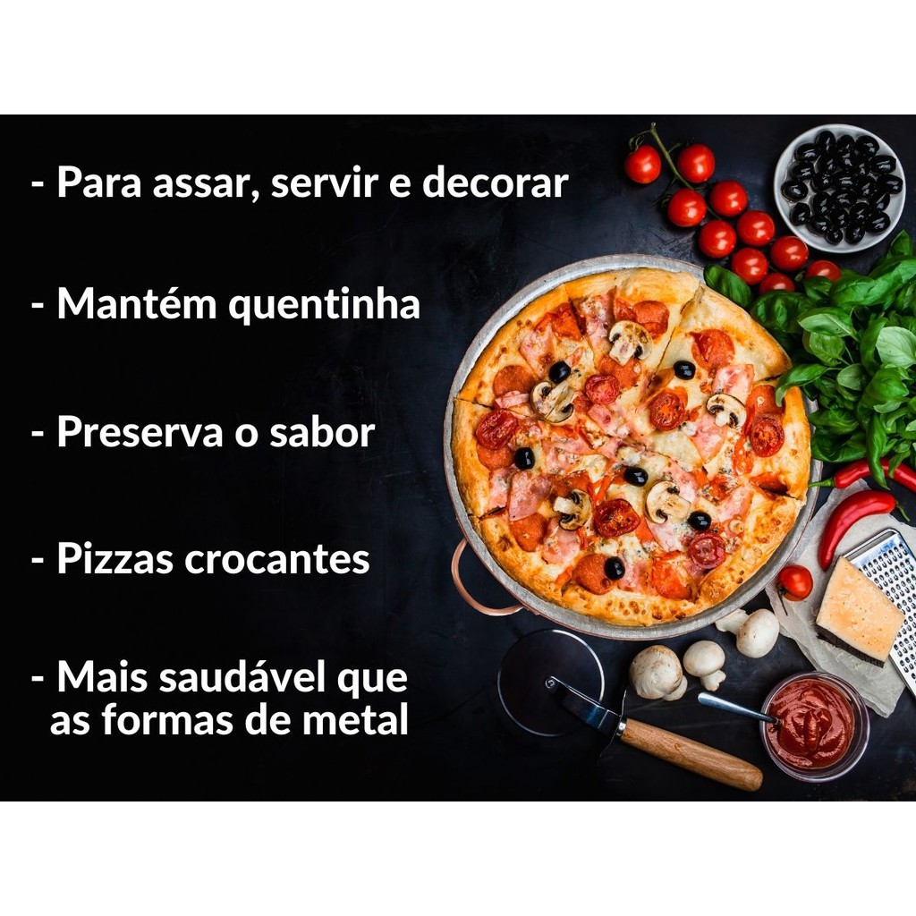 Pedra Refratária Gourmet Para Pizza 37 Cm Alças De Cobre