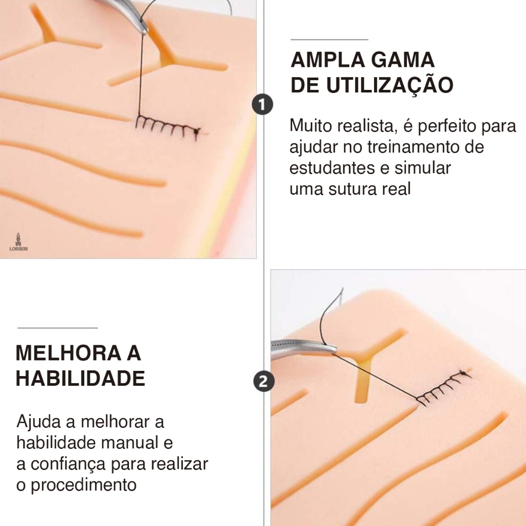 Pele Artificial Silicone Lorben para Treinamento Simulação de Sutura com 3 Camadas