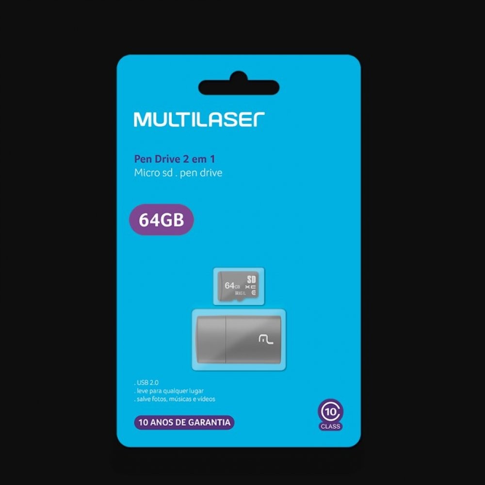Pen Drive 2 em 1 Leitor USB e Cartão de Memória Classe 10 64GB Multilaser - MC164