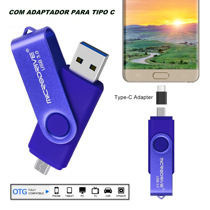 Pendrive OTG 32gb 3em1 para Smartphone e Computador com entradas / Usb 2.0 / Micro Usb / Usb TIPO C