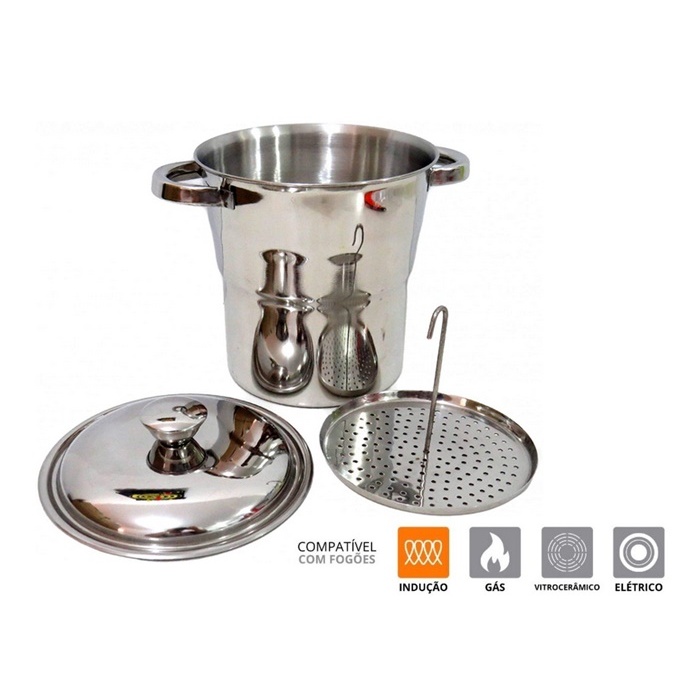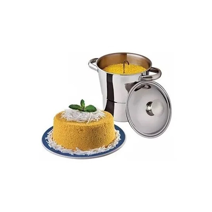 Panela Cuscuzeira Tradicional 100% Aço Inox Cuscuz Top Oferta