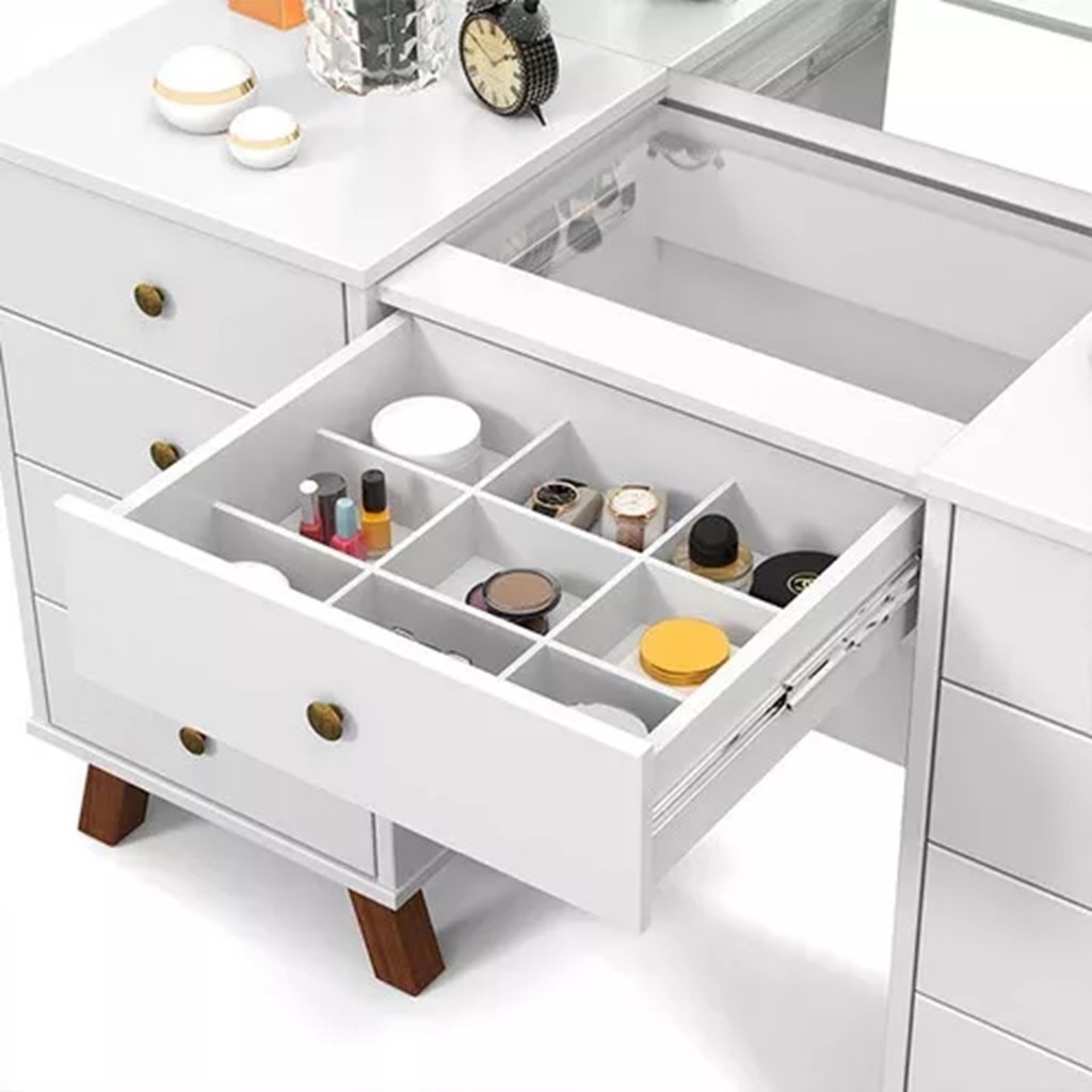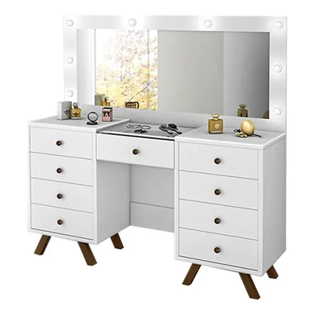Penteadeira Camarim 9 Gavetas Retro Mila C/led -Espelho- Gaveta Maquiagem -Branco