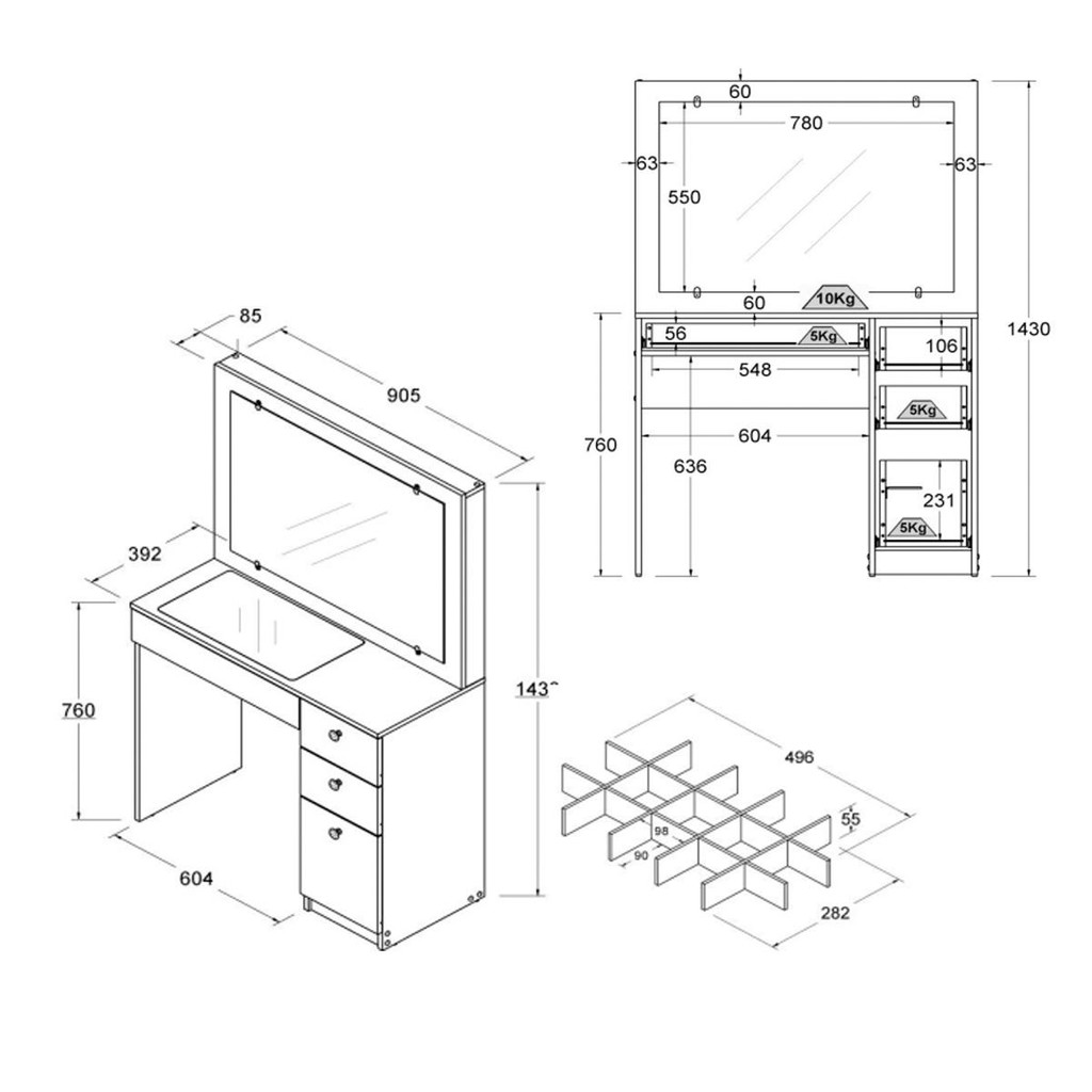 Penteadeira Ditália 4 Gavetas c/tampo de vidro PE-120