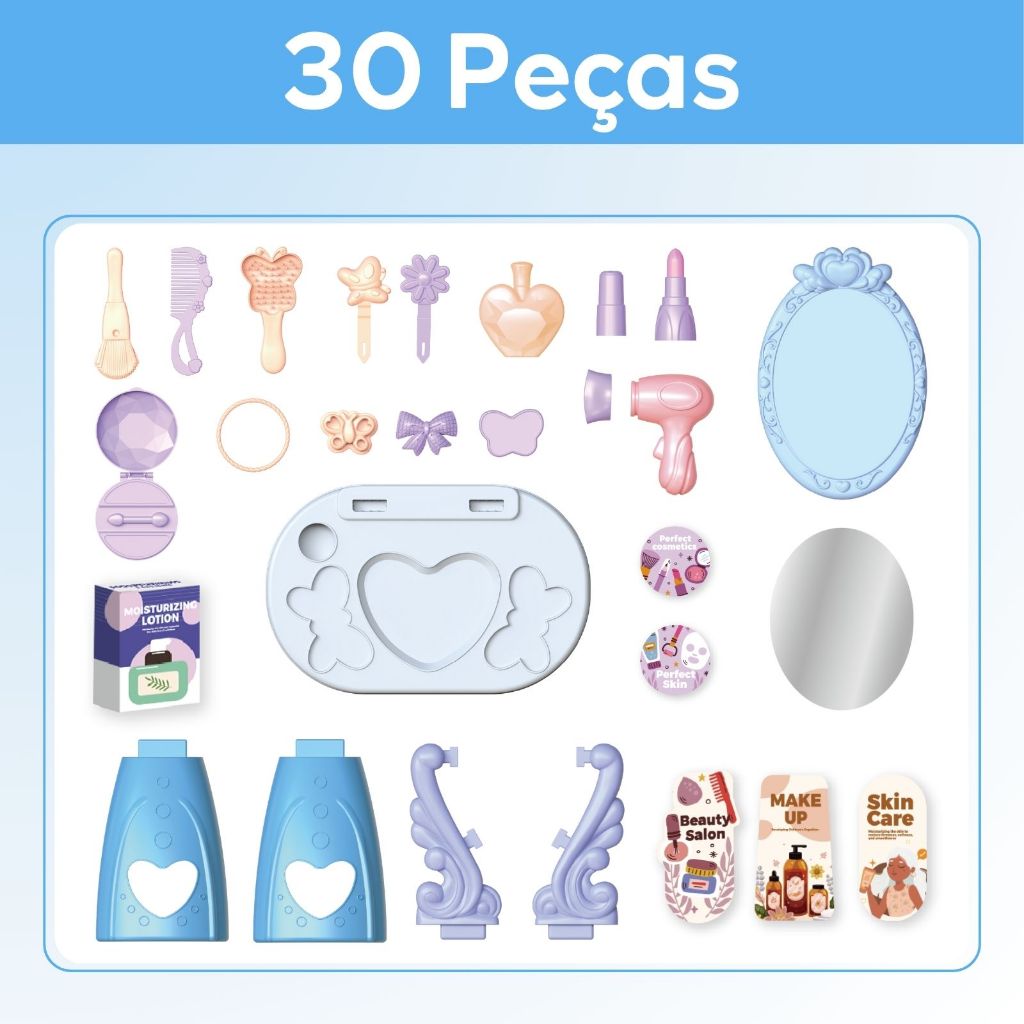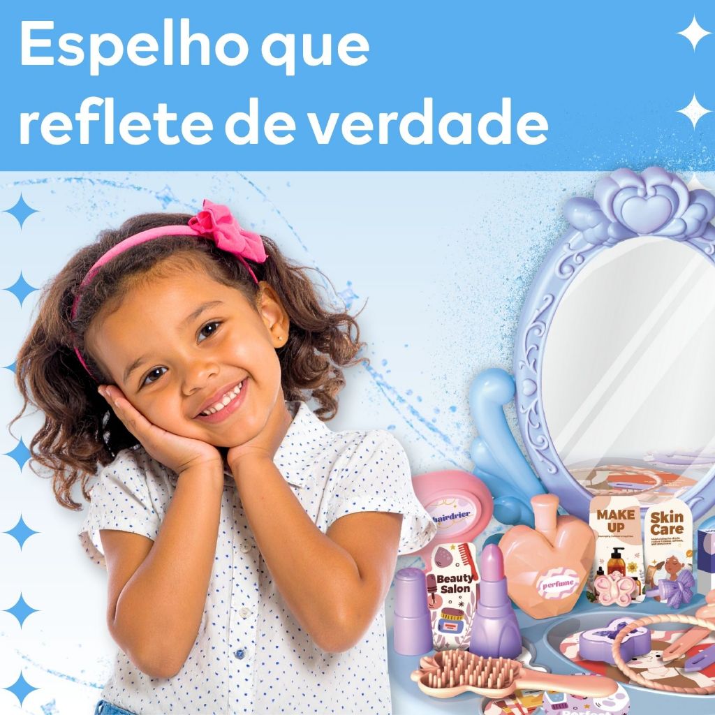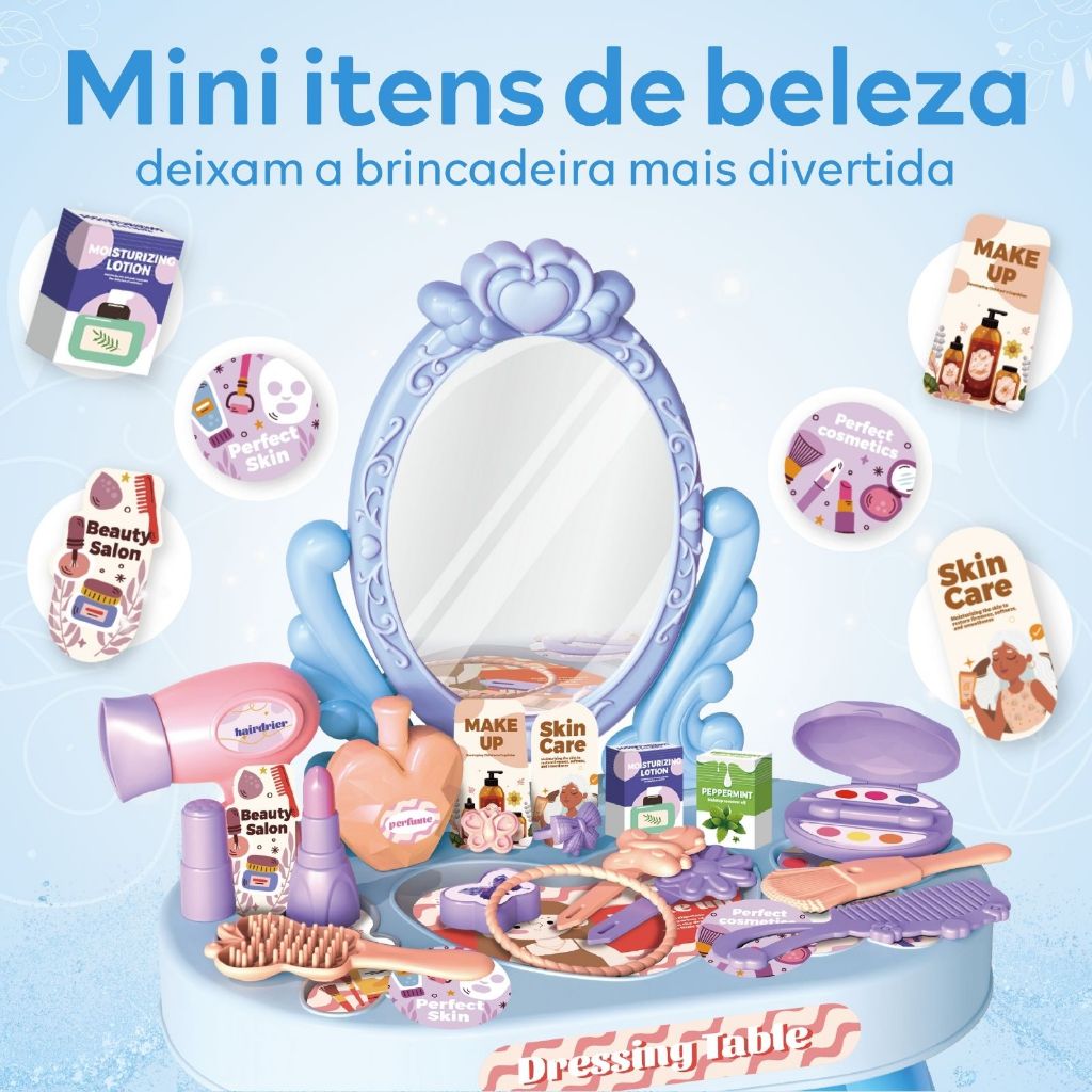 Penteadeira Infantil Princesa com Acessórios Menina Maquiagem Faz de Conta