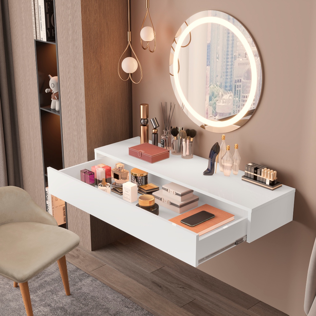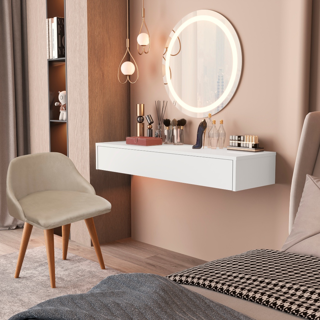 Penteadeira Suspensa 100cm Com Gaveta Ideal Para Maquiagem Organização Com Banqueta Moderna Estofada
