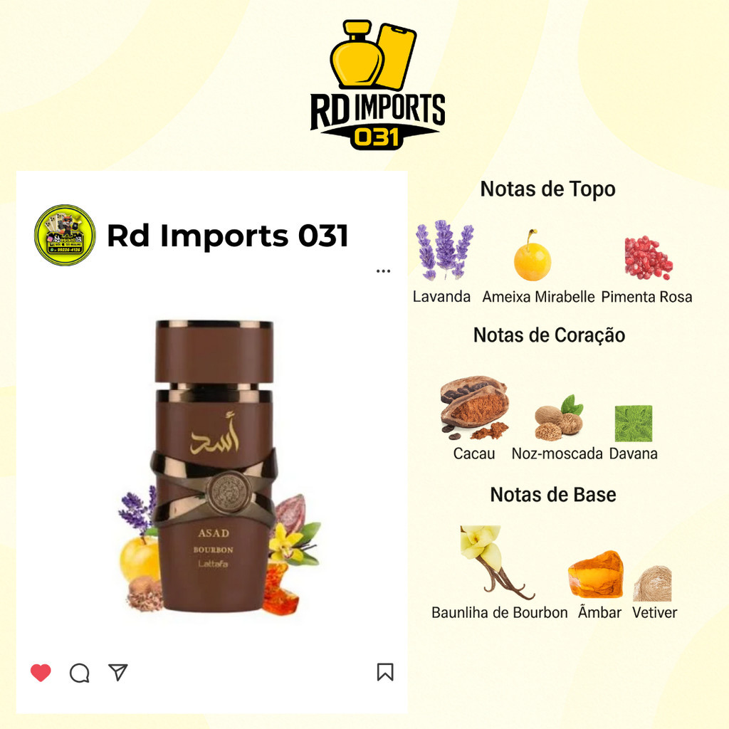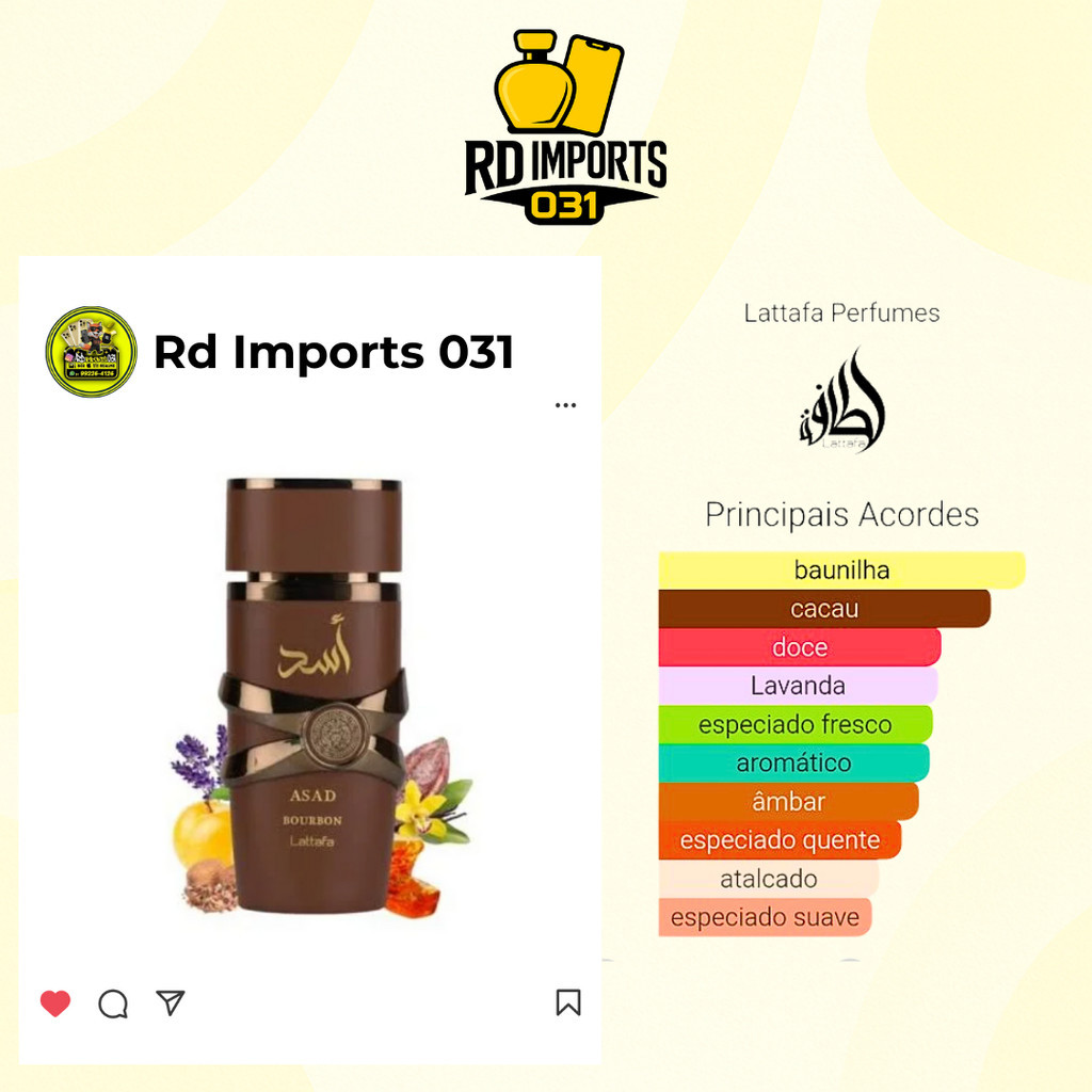 Perfume Asad Bourbon Lattafa Árabe Masculino Eau de Parfum 100ml Original Oriental Especiado