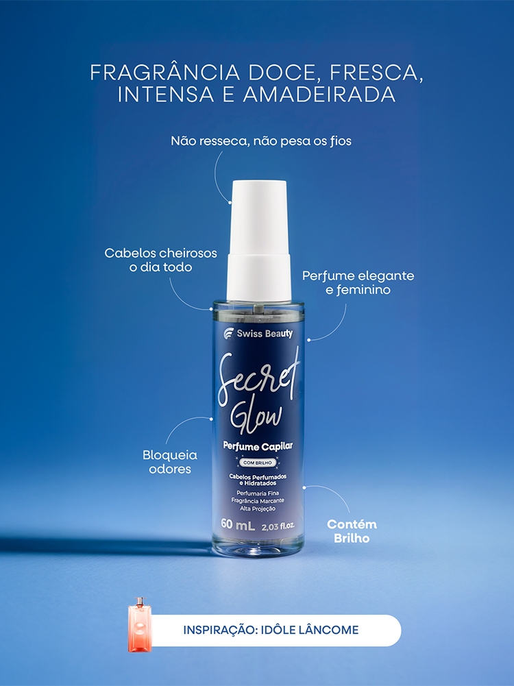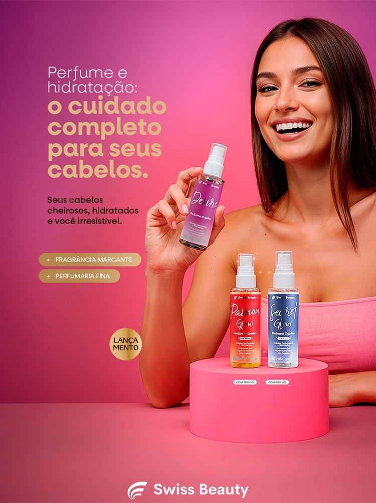 Perfume Capilar Feminino Com Brilho 60ml SWISS BEUATY | Perfume Para Cabelo
