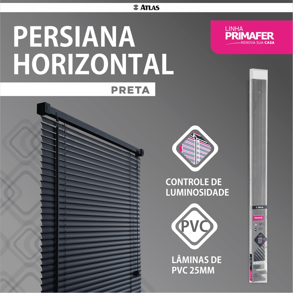 Persiana Pvc Horizontal Atlas Primafer 120x130cm Preto