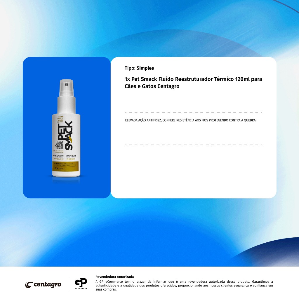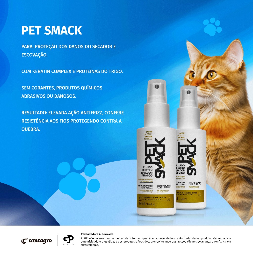 Pet Smack Fluido Reestruturador Térmico 120ml para Cães e Gatos Centagro