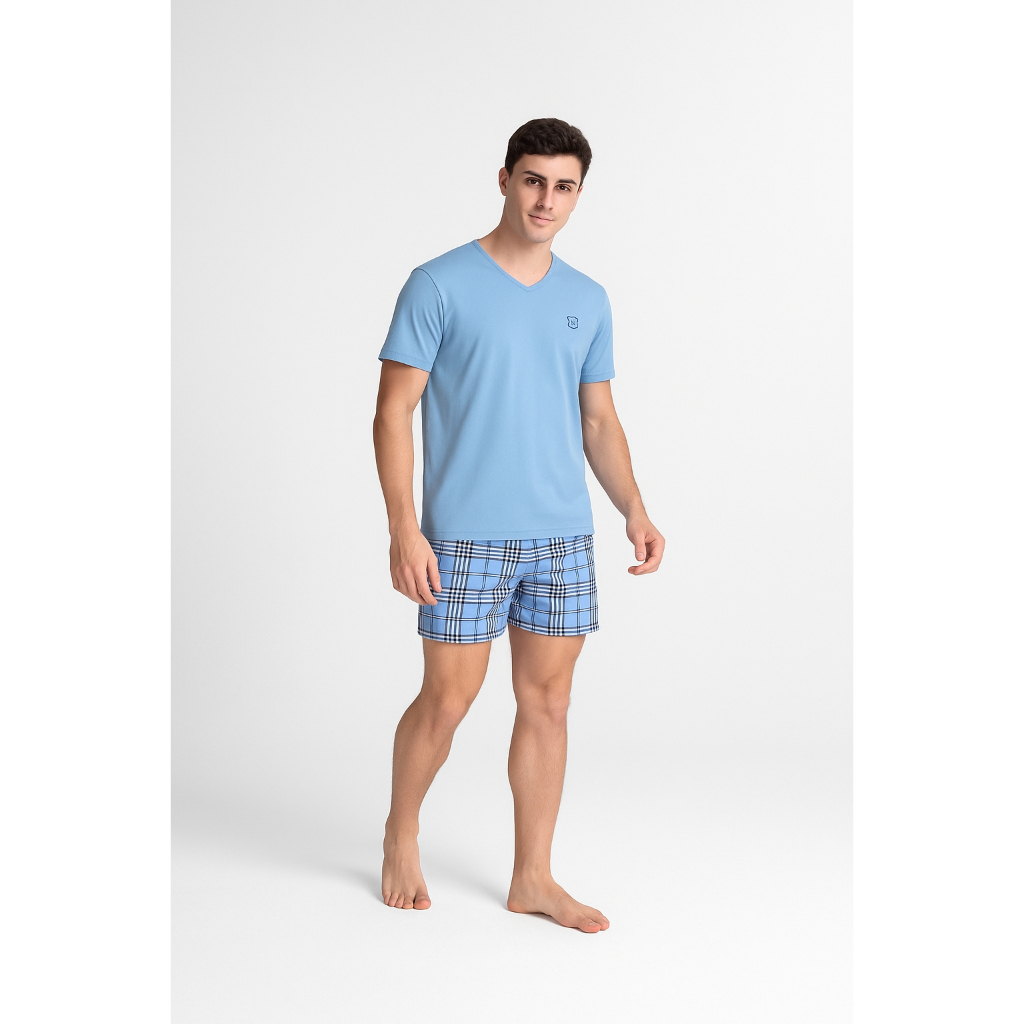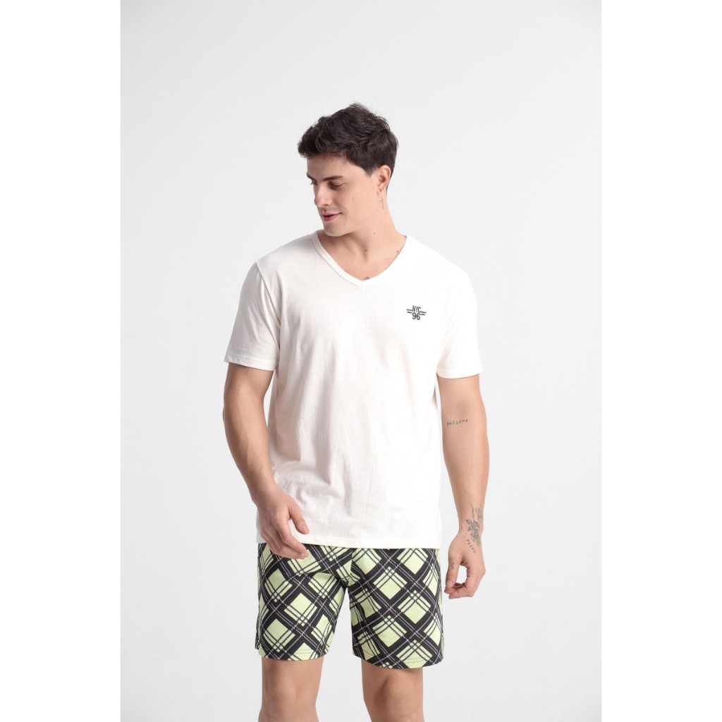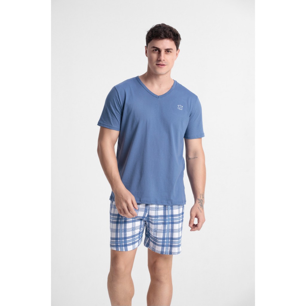 Pijama Adulto Masculino Camiseta E Shorts 100% Algodão