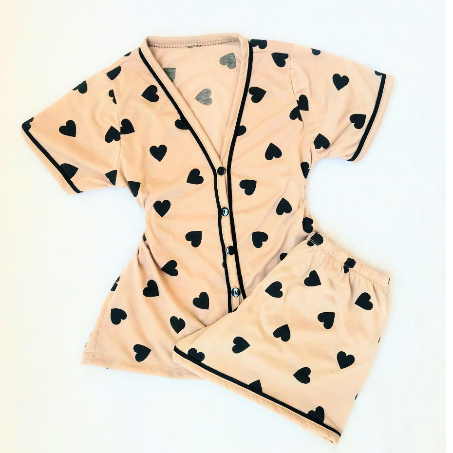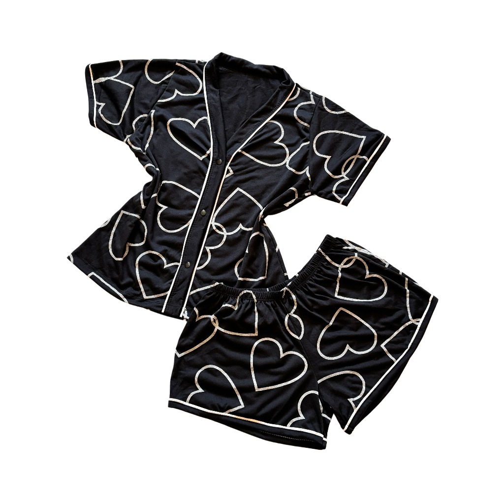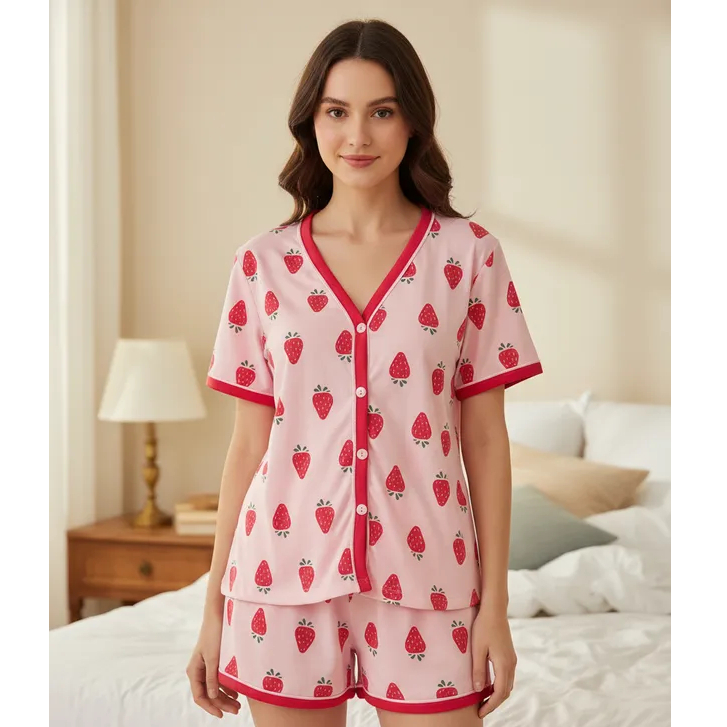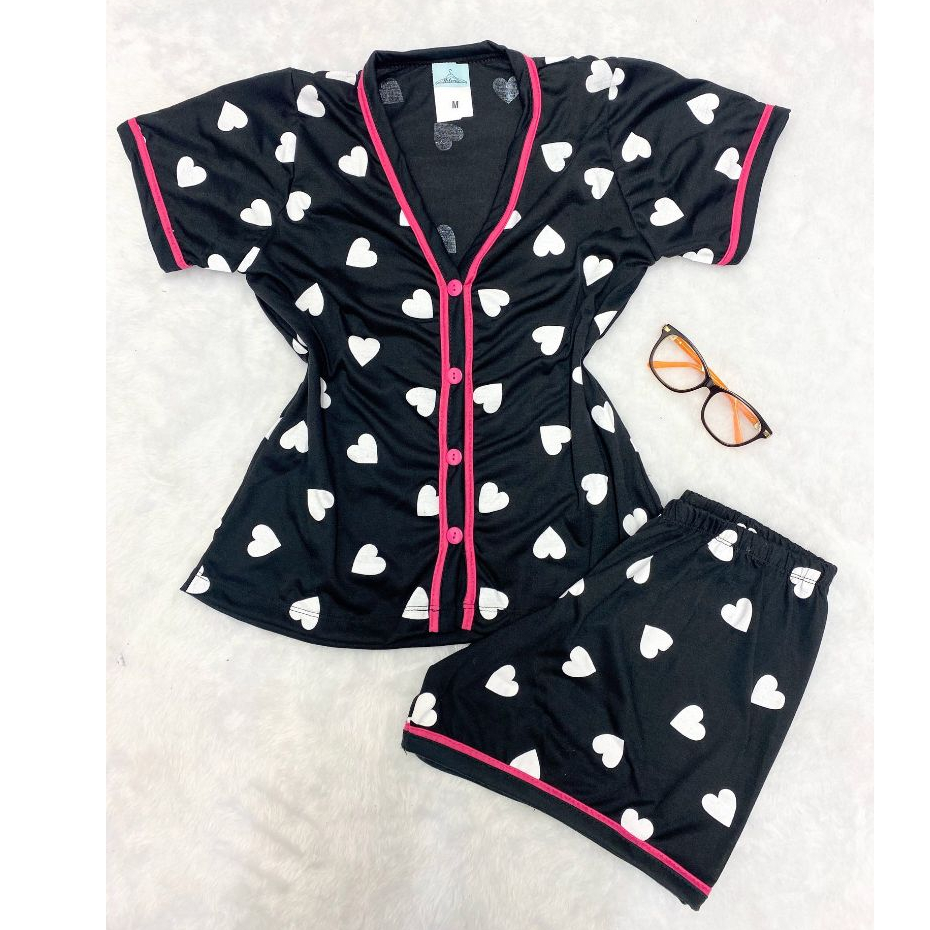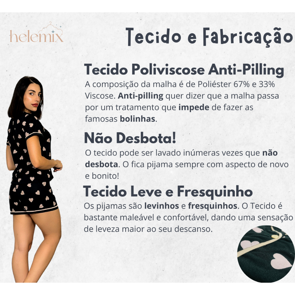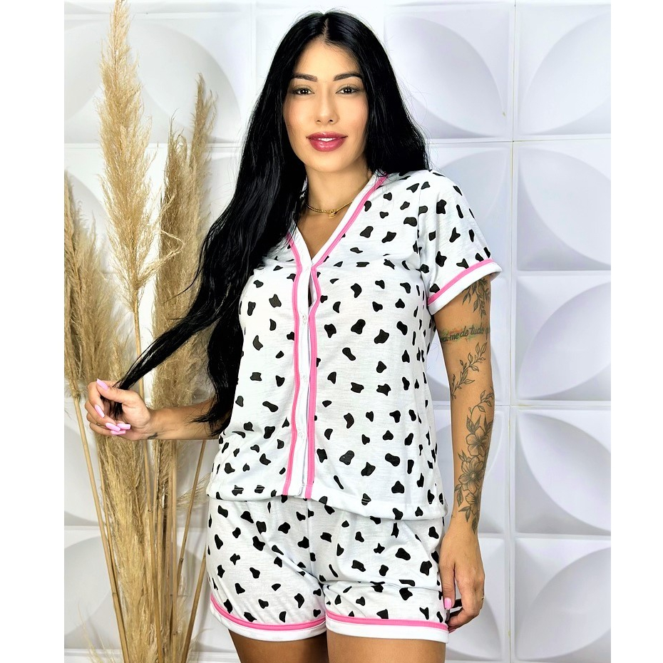 Pijama Americano Adulto Feminino Blogueira Verão Gola V Amamentação abertura de botões Short doll