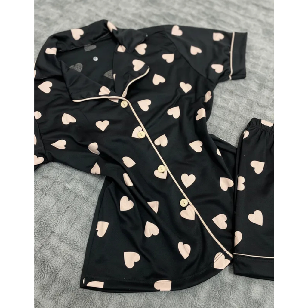 Pijama Americano Curto Feminino Adulto Gola e Botões Verão Malha Conforto Para Dormir Amamentação